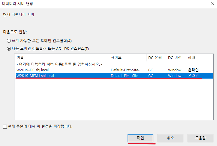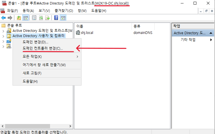 이번엔 AD사용자 및 컴퓨터의 도메인 컨트롤러를