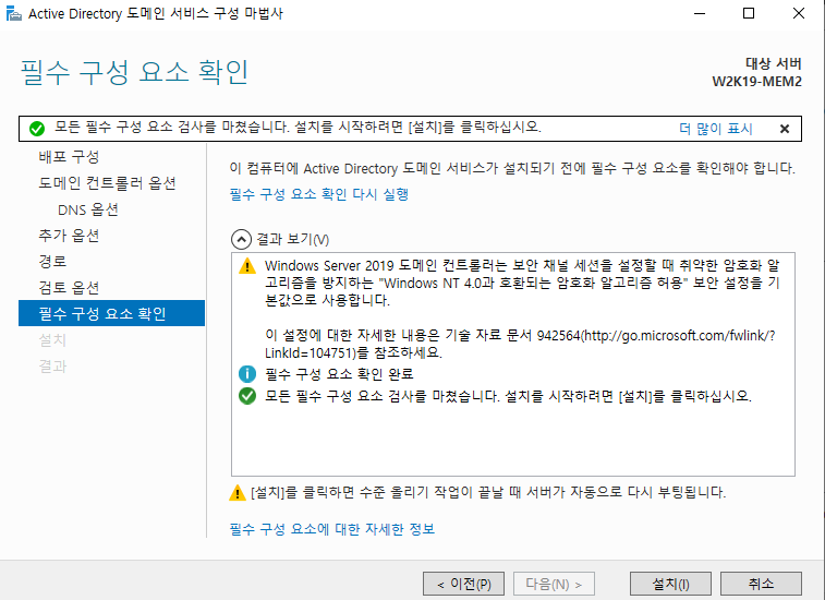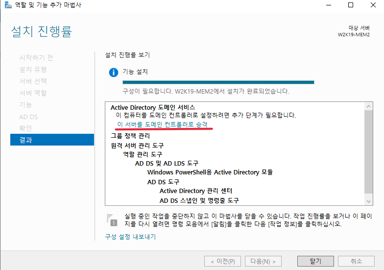 IP를 알맞게 설정한 뒤에 ADDS를 설치해준다.