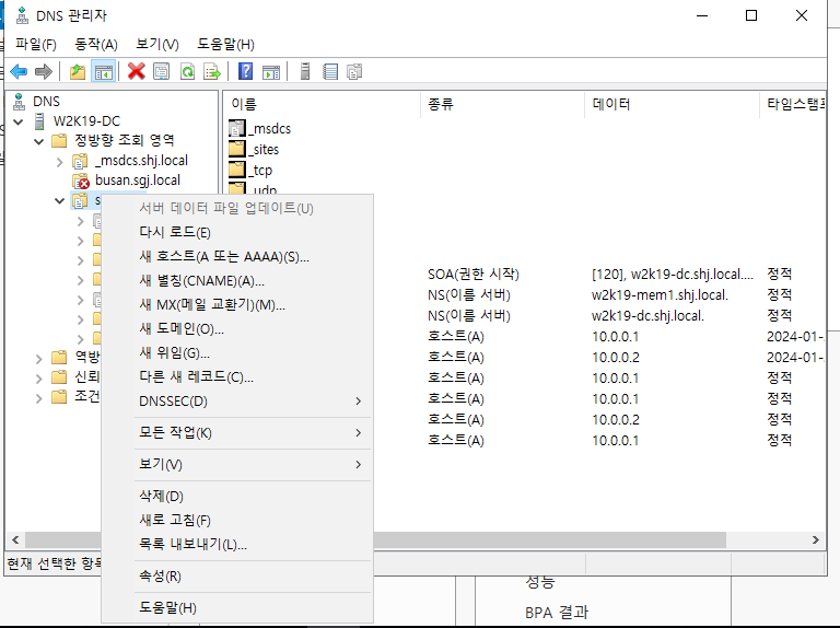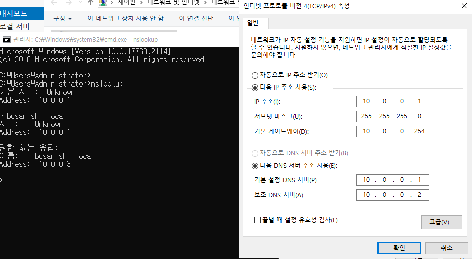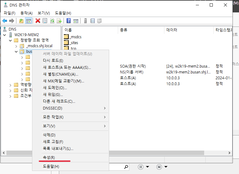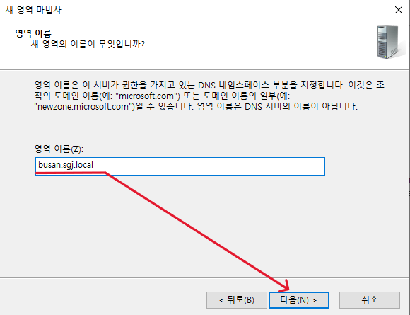 DC-PC의 DNS 관리자에서 새 보조영역을 추가한 뒤에 busan. 도메인을 입력해준다