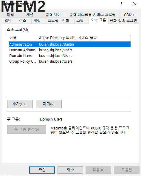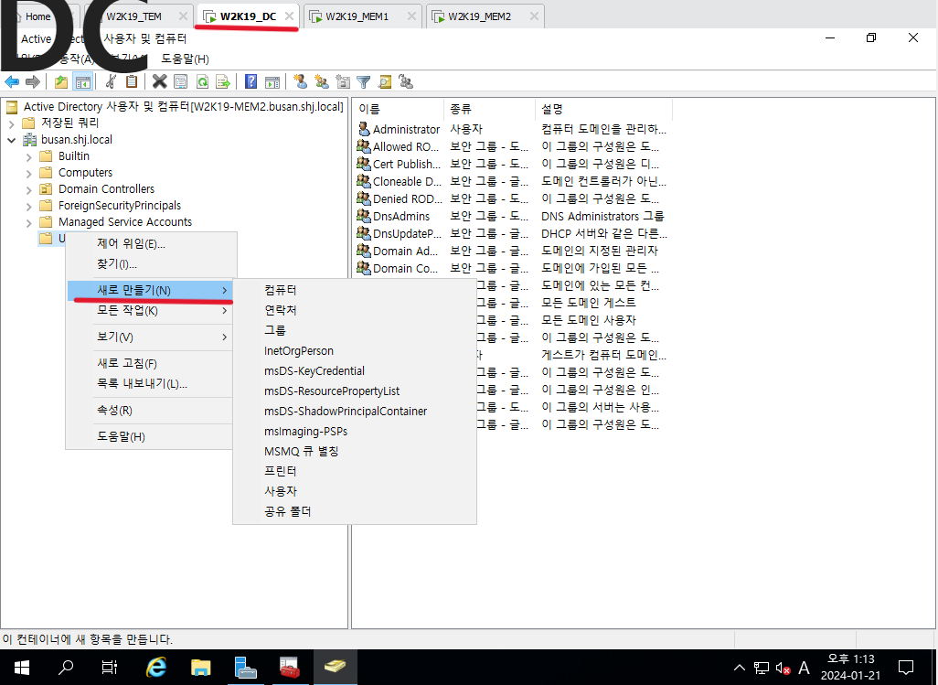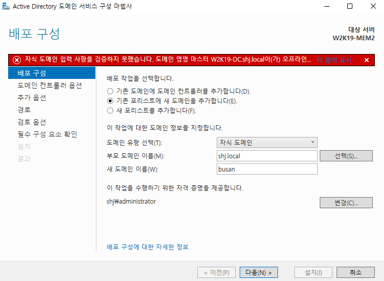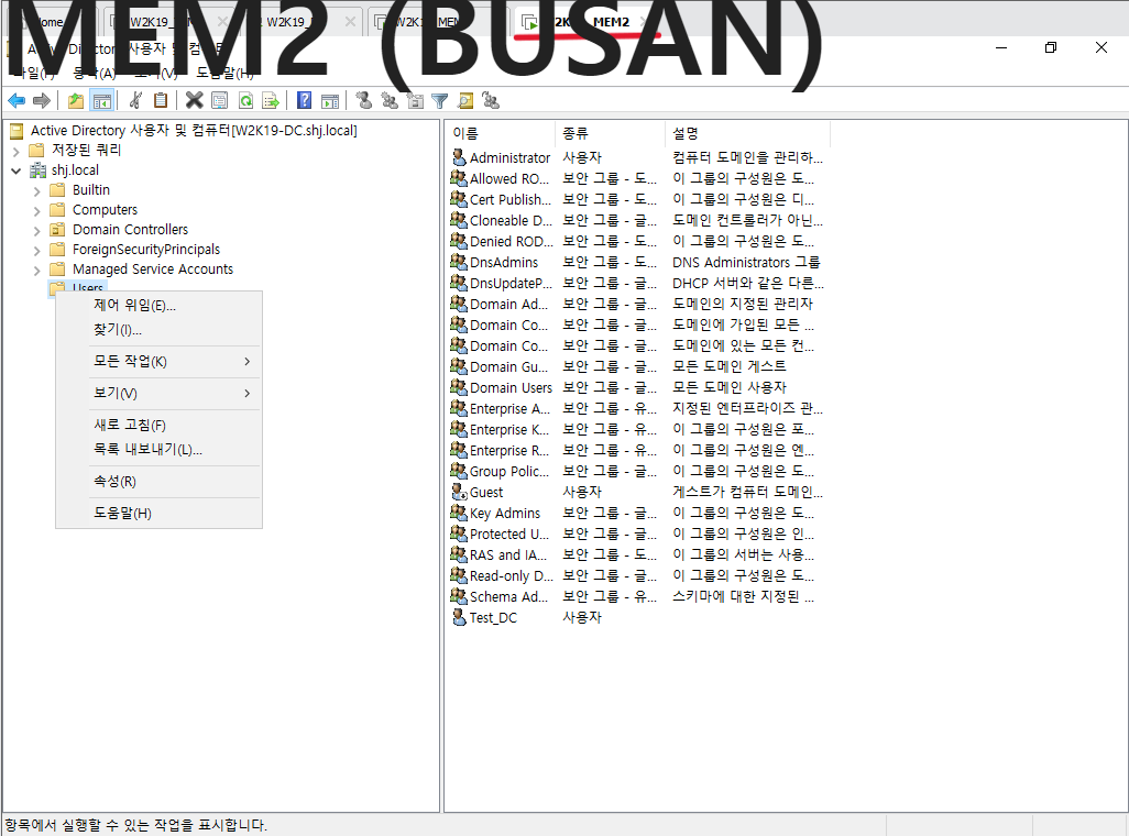 DC에서는 BUSAN 도메인으로 변경 후 사용자 생성이 가능하지만