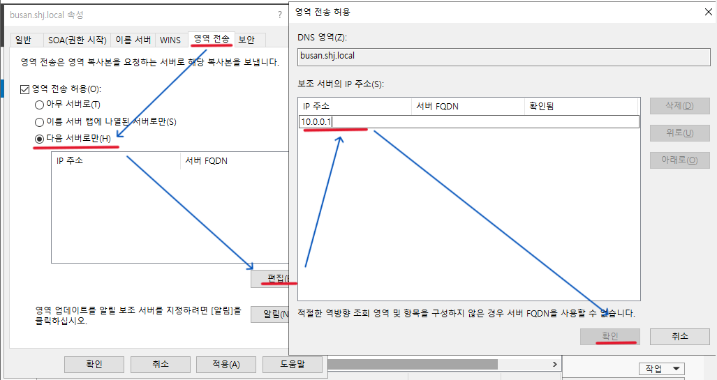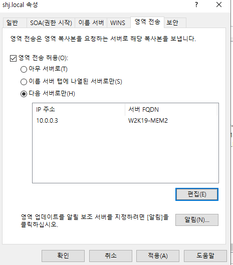 MEM2 PC 에서 DNS 관리자의 영역전송을 허용해준다