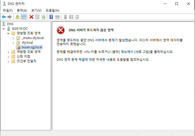 보조 DNS영역이 만들어졌으나 아직 로드가 되진 않았다.