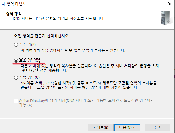 마지막으로 자식 도메인을 DNS보조 영역으로 만들어보겠다.