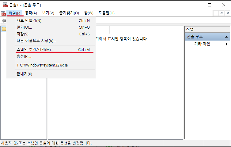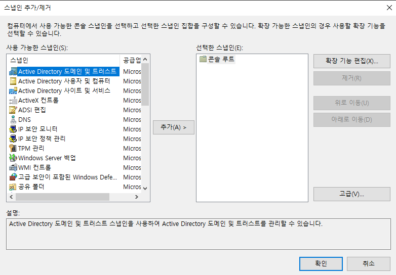 상위 4개의 AD 스냅인을 모두 추가 해준다.
