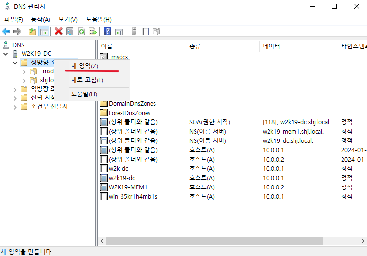 MEM2- PC에서도 영역전송 허용 및 DNS 보조영역 을 만든다.