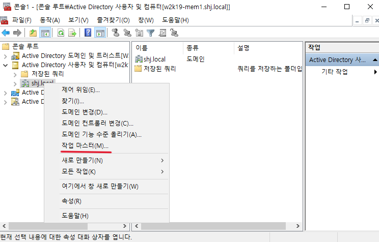 스키마, 도메인 및 트러스트 스냅인들도 모두 작업 마스터를 변경해주자!