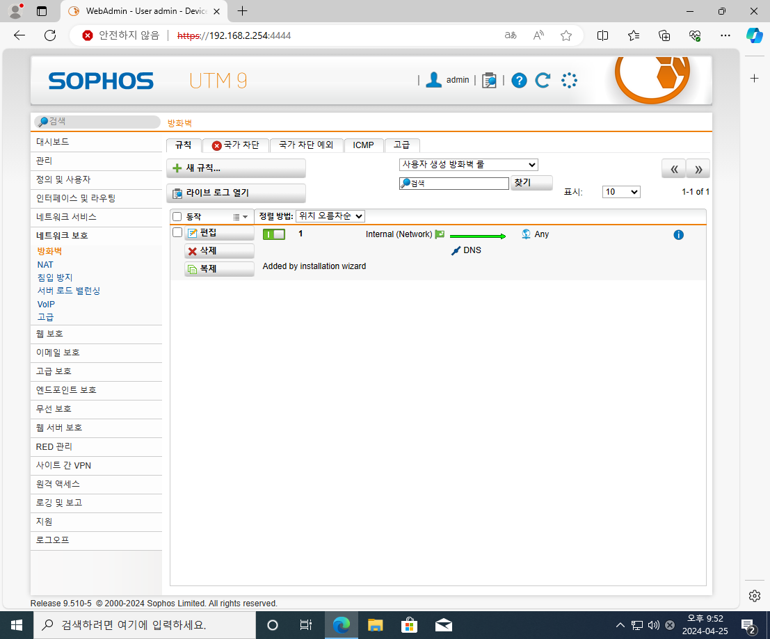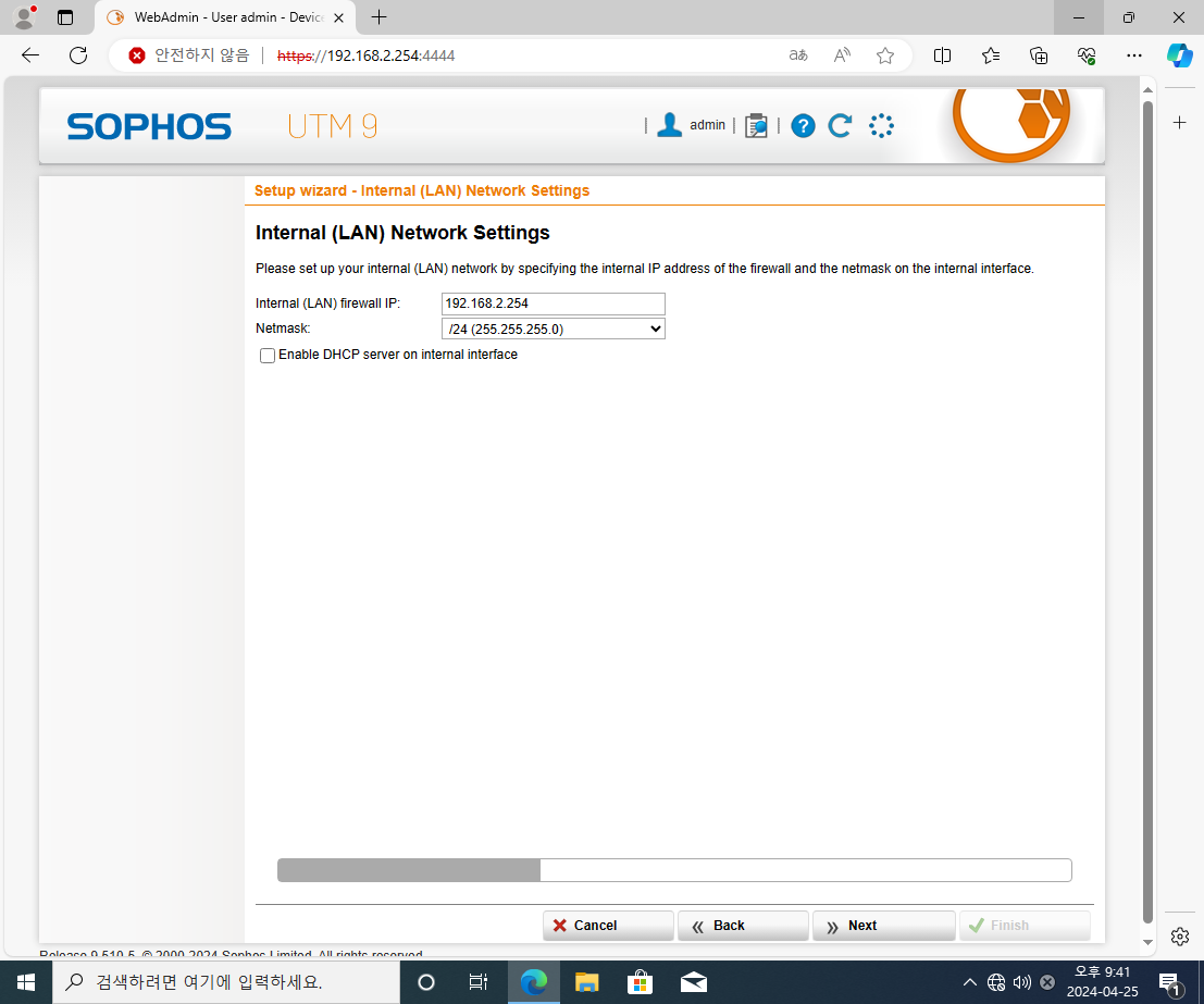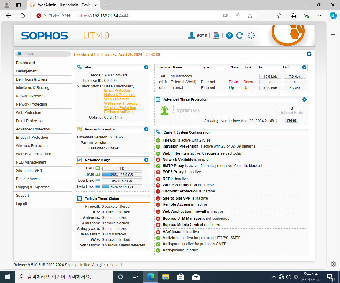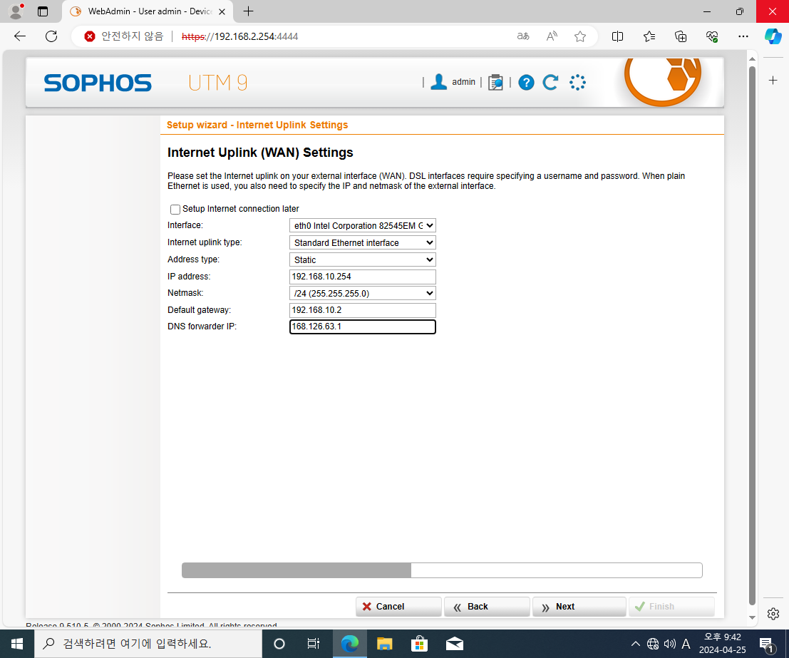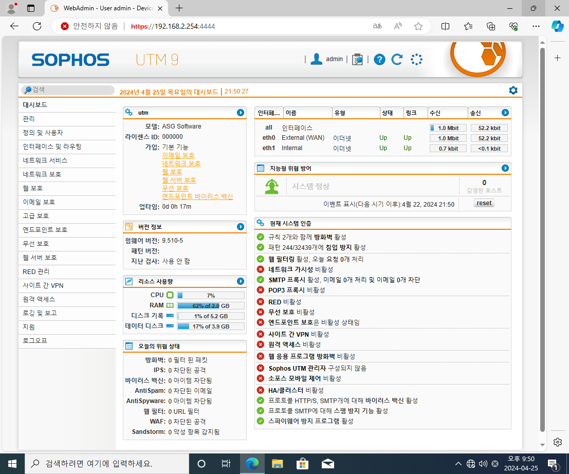 UTM 설치시 지정했던 내부 IP를 여기서 바꾸거나 설정할 수도 있다.