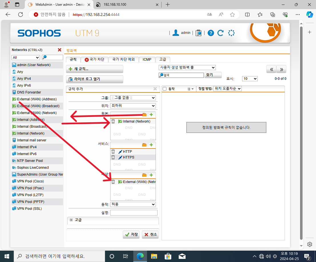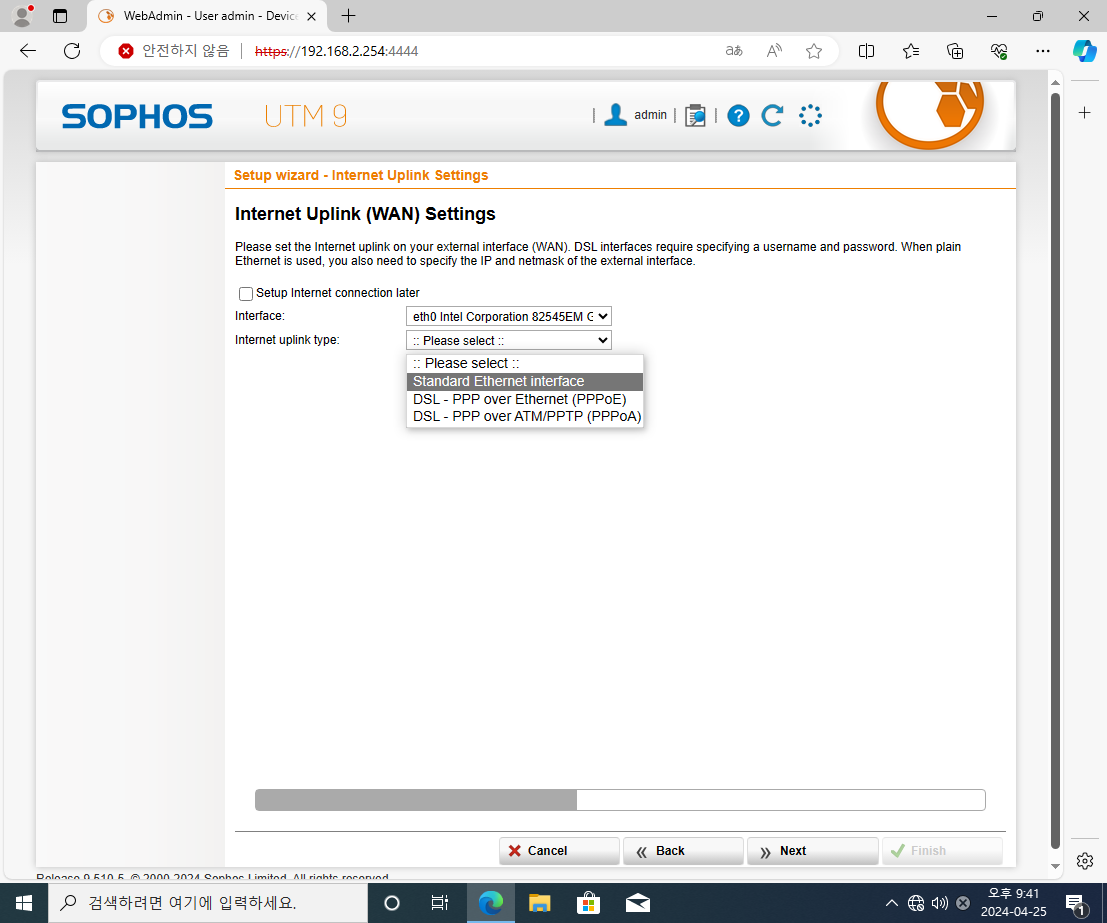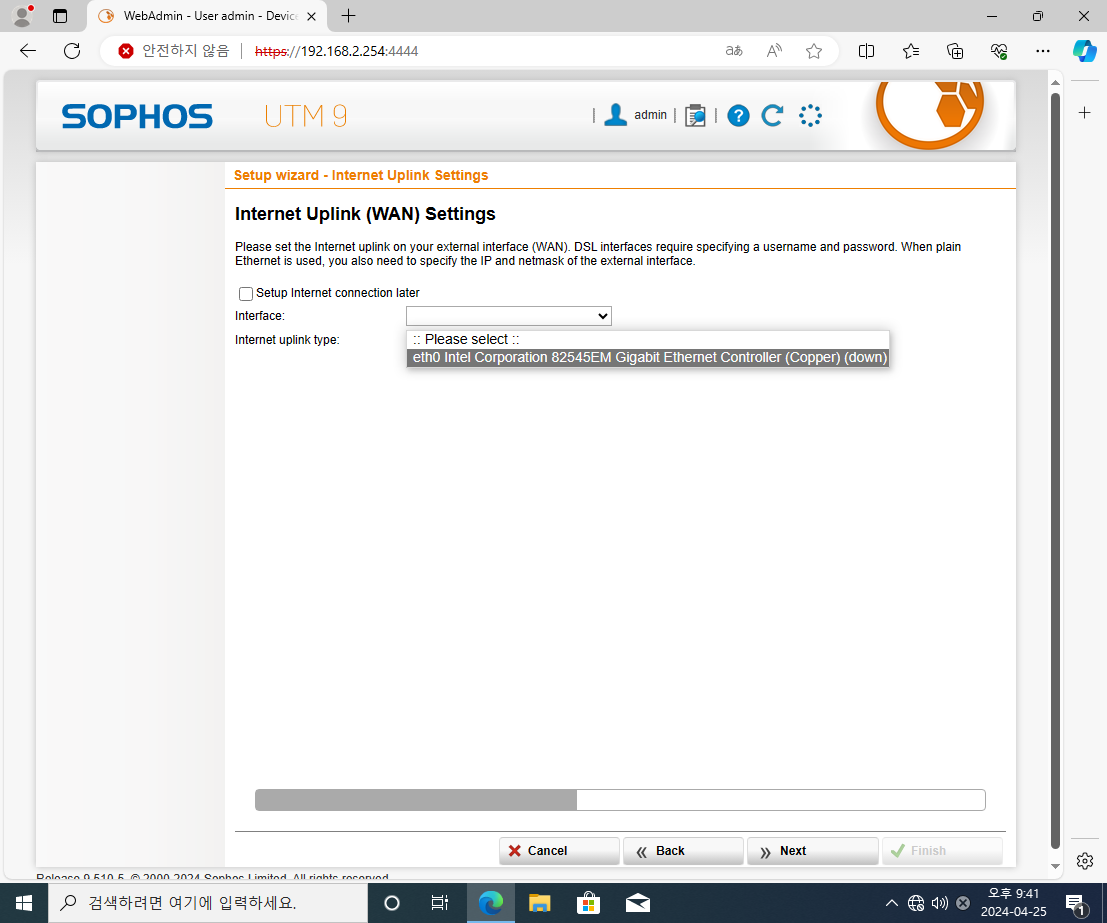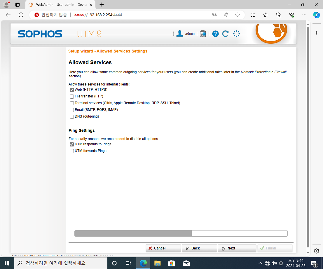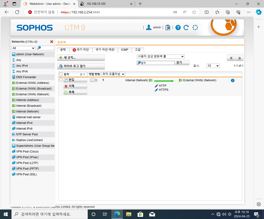 UTM 설치시 지정했던 내부 IP를 여기서 바꾸거나 설정할 수도 있다.