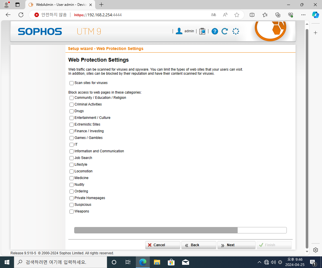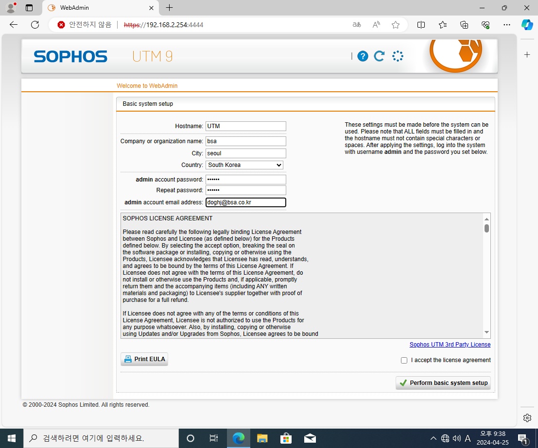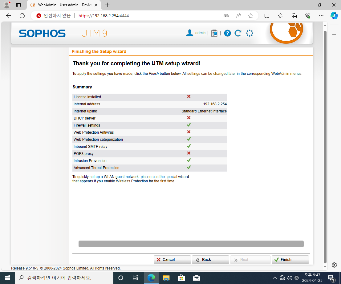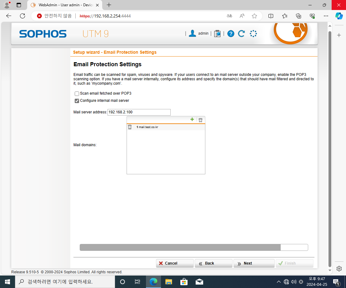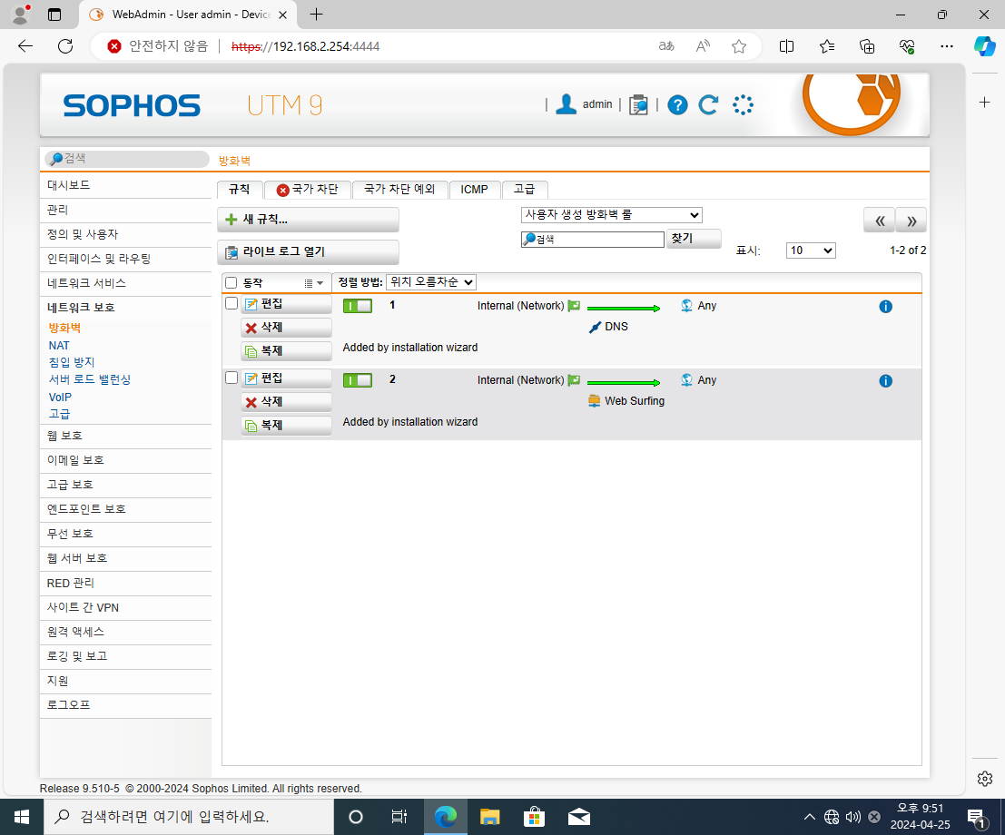 UTM 설치시 지정했던 내부 IP를 여기서 바꾸거나 설정할 수도 있다.