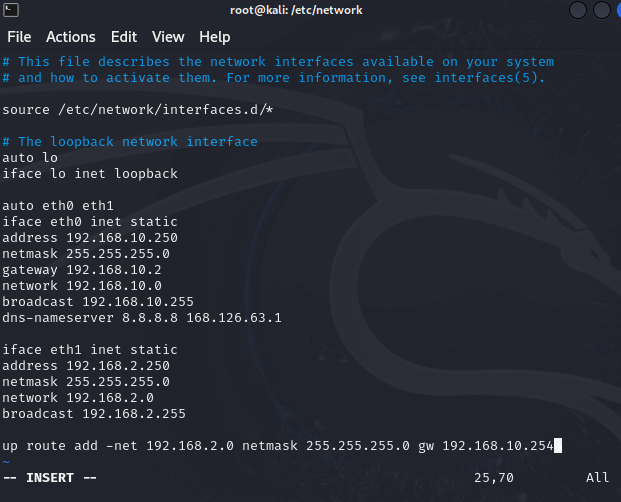 eth1 은 외부로 나갈일이 없기에 필요없는 부분은 제외 해서 작성했다.