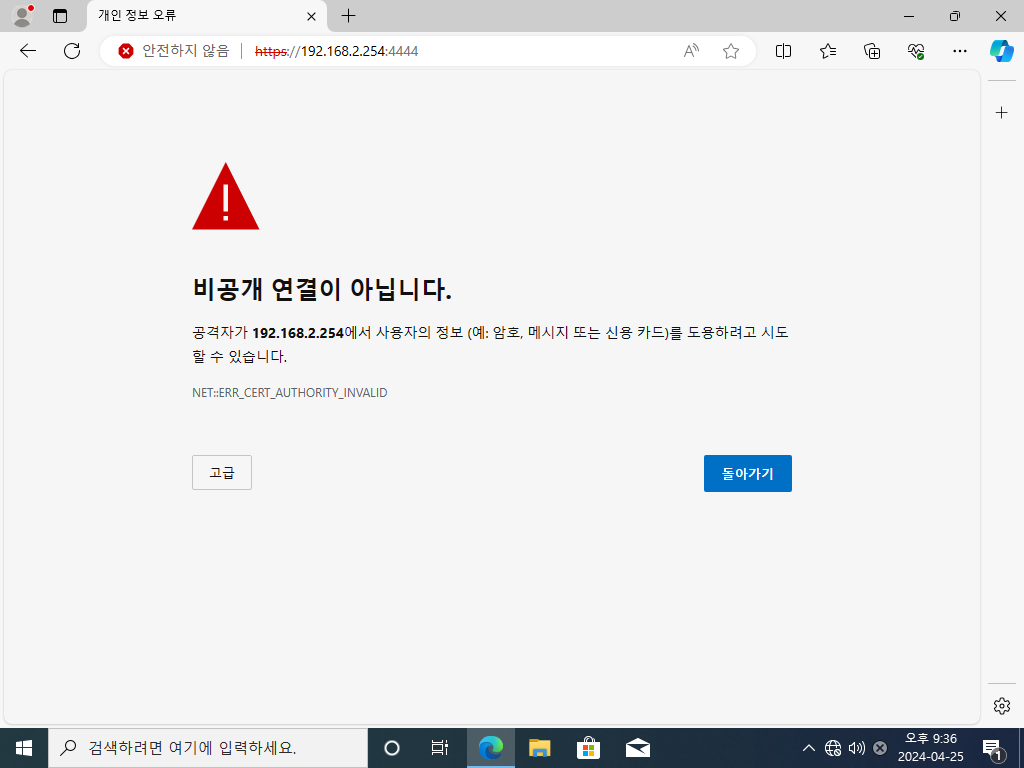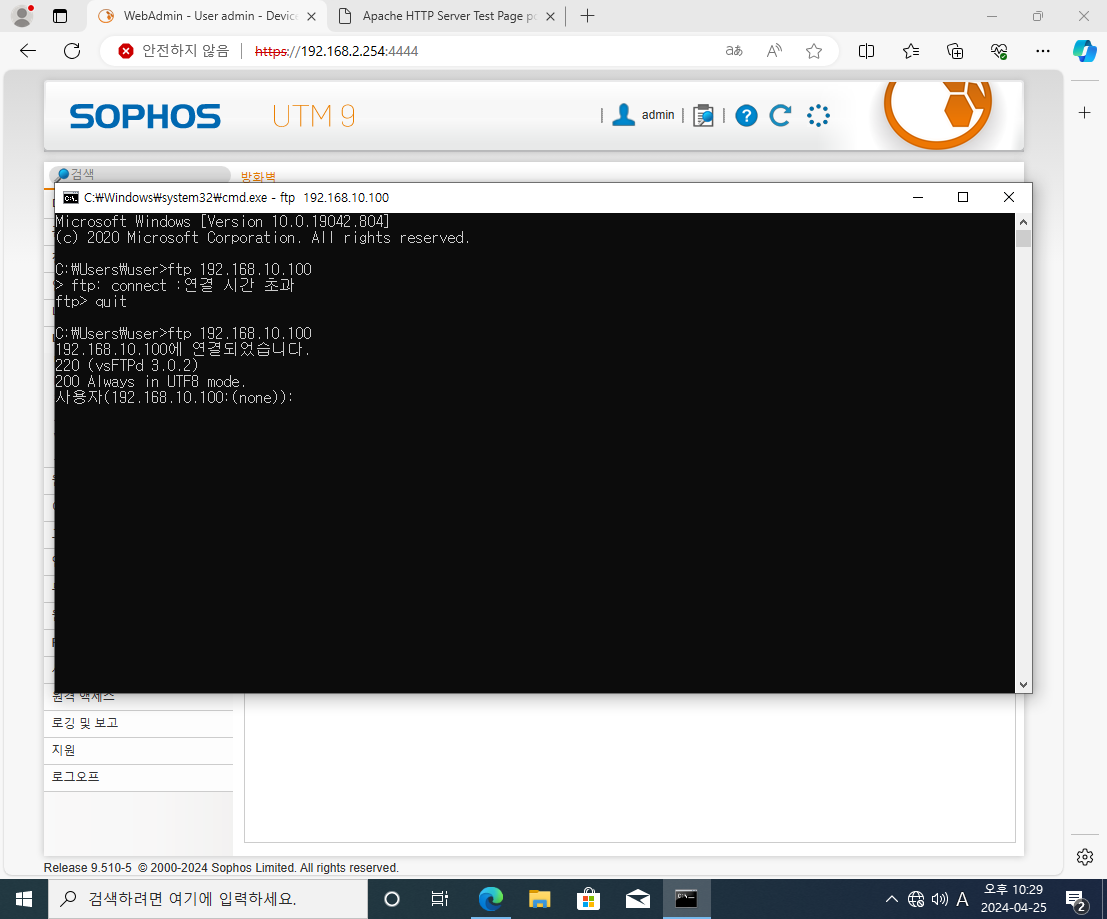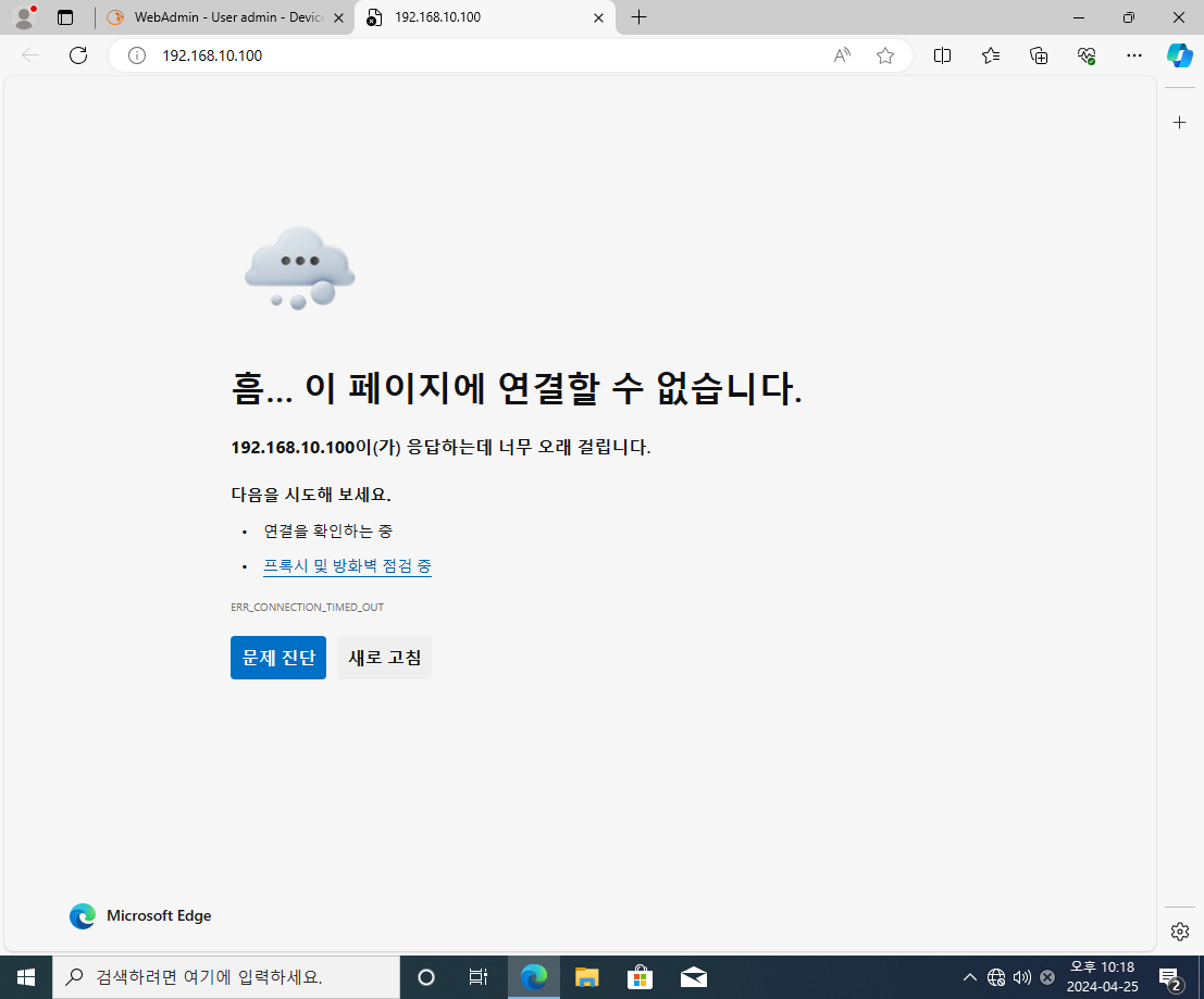 삭제한 뒤에 Window에서 192.168.10.100 의 http로 접속해보자