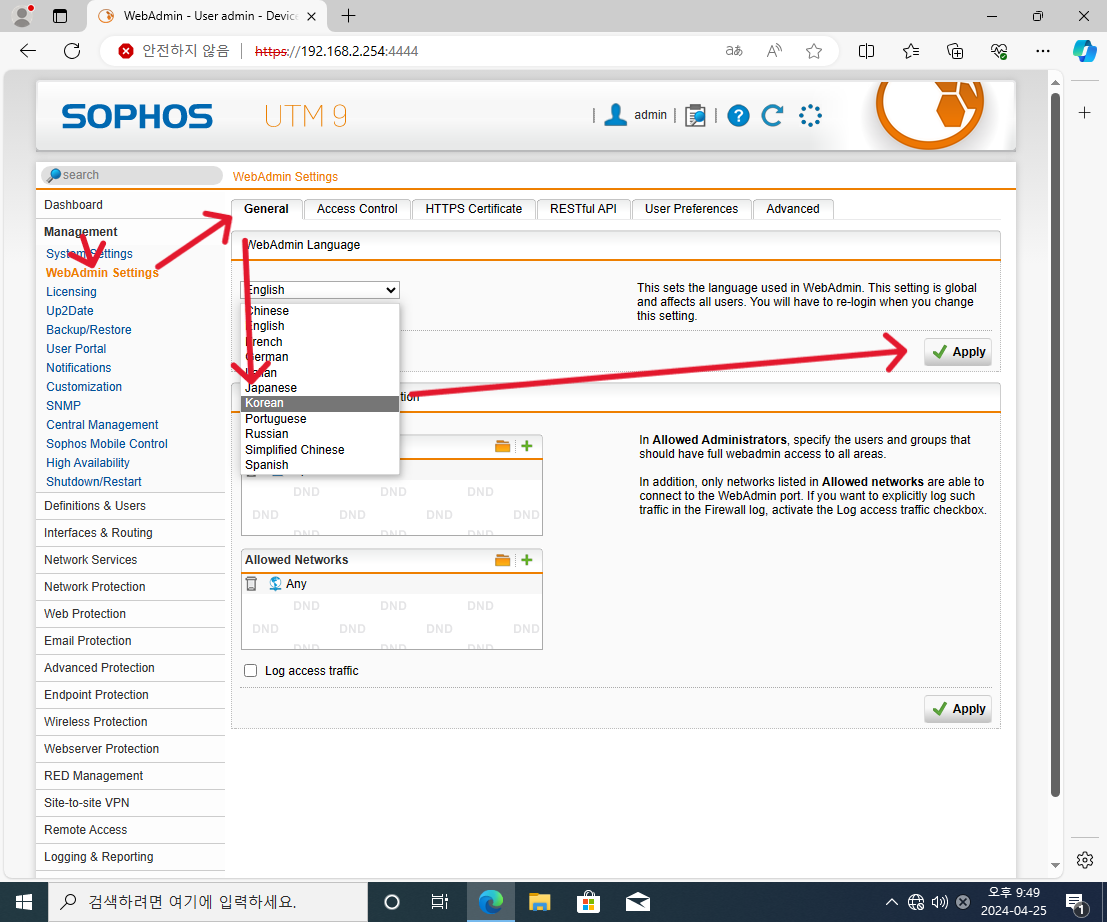 WebAdmin Setting에서 사용자 언어를 바꿔주자.