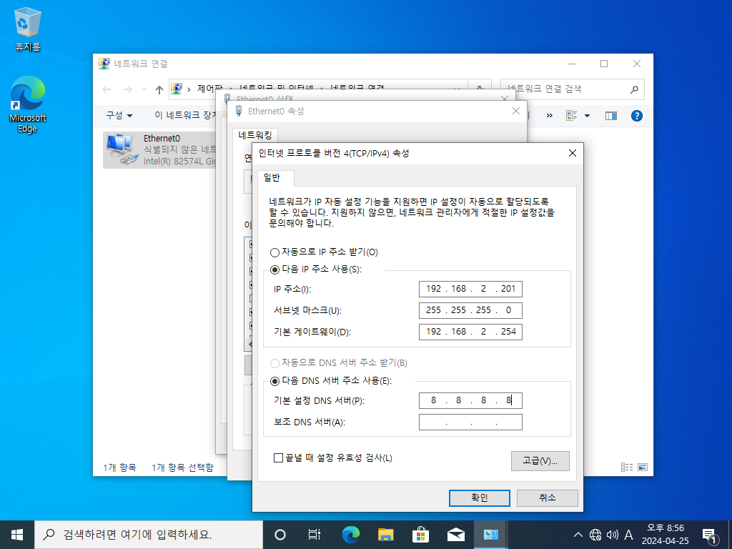 그 다음은 외부 IP인데 eth0을 아래 사진과 같이 설정해주자.