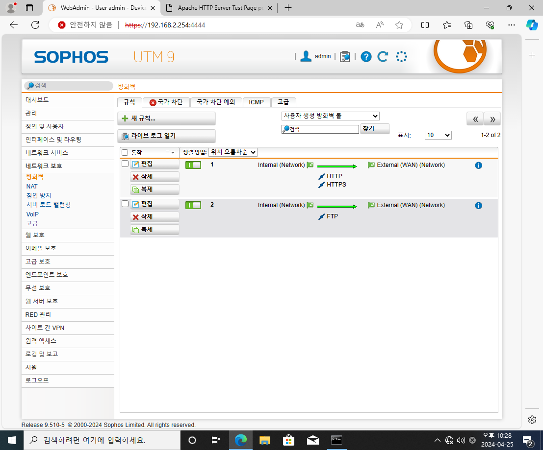 이제 다시 방화벽 설정으로 돌아가서 새규칙으로 HTTP를 허용해보자