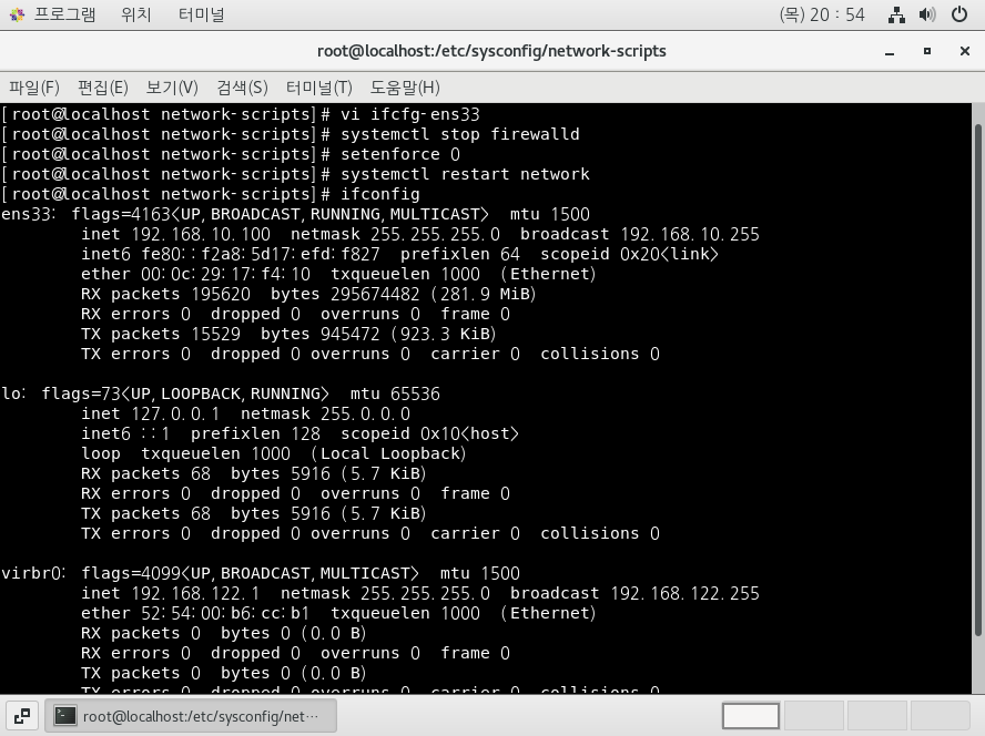 그 후 모든 Linux 들의 네트워크 어댑터를 알맞는 IP의 것으로 바꿔주고