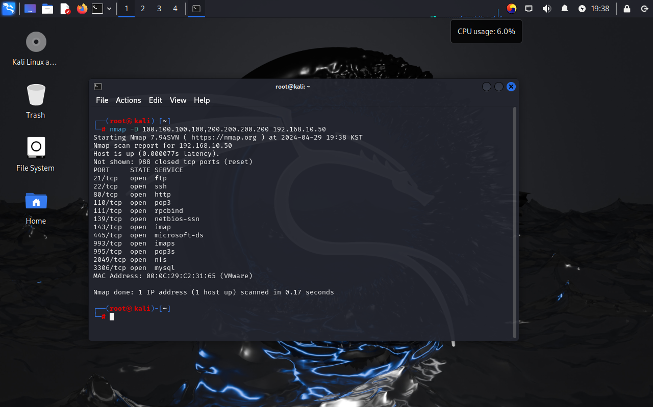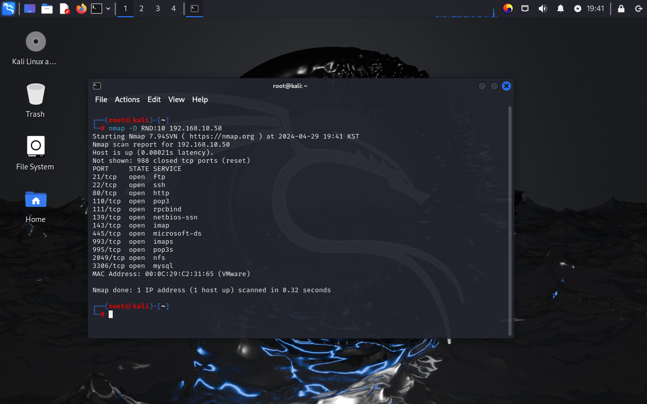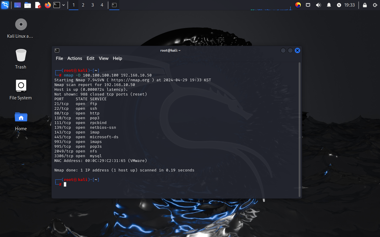 nmap -D 100.100.100.100,200.200.200.200 192.168.10.50