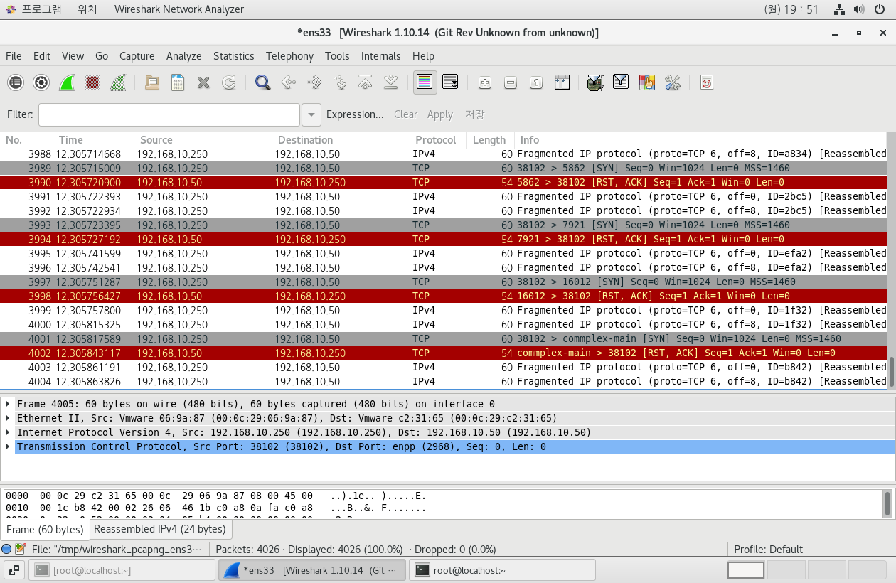 fragmented IP Protocol로 뜨면서 TCP 번호만 알고 있고