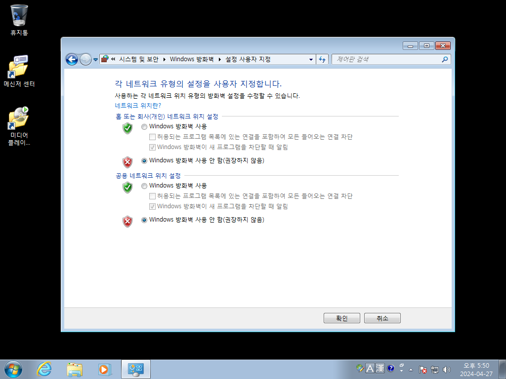 먼저 각 PC들의 방화벽은 비활성화 시켰다.