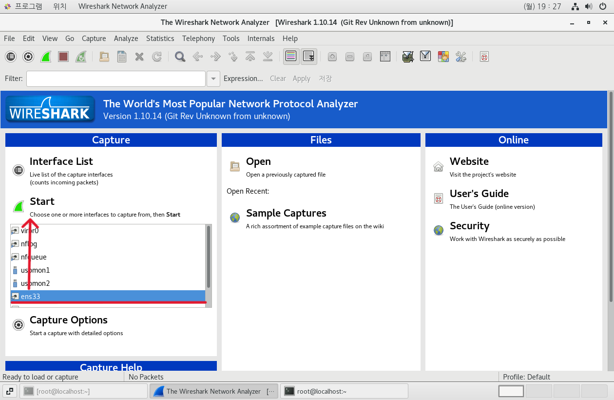 실행 후에 네트워크 인터페이스를 선택해주고 시작하자