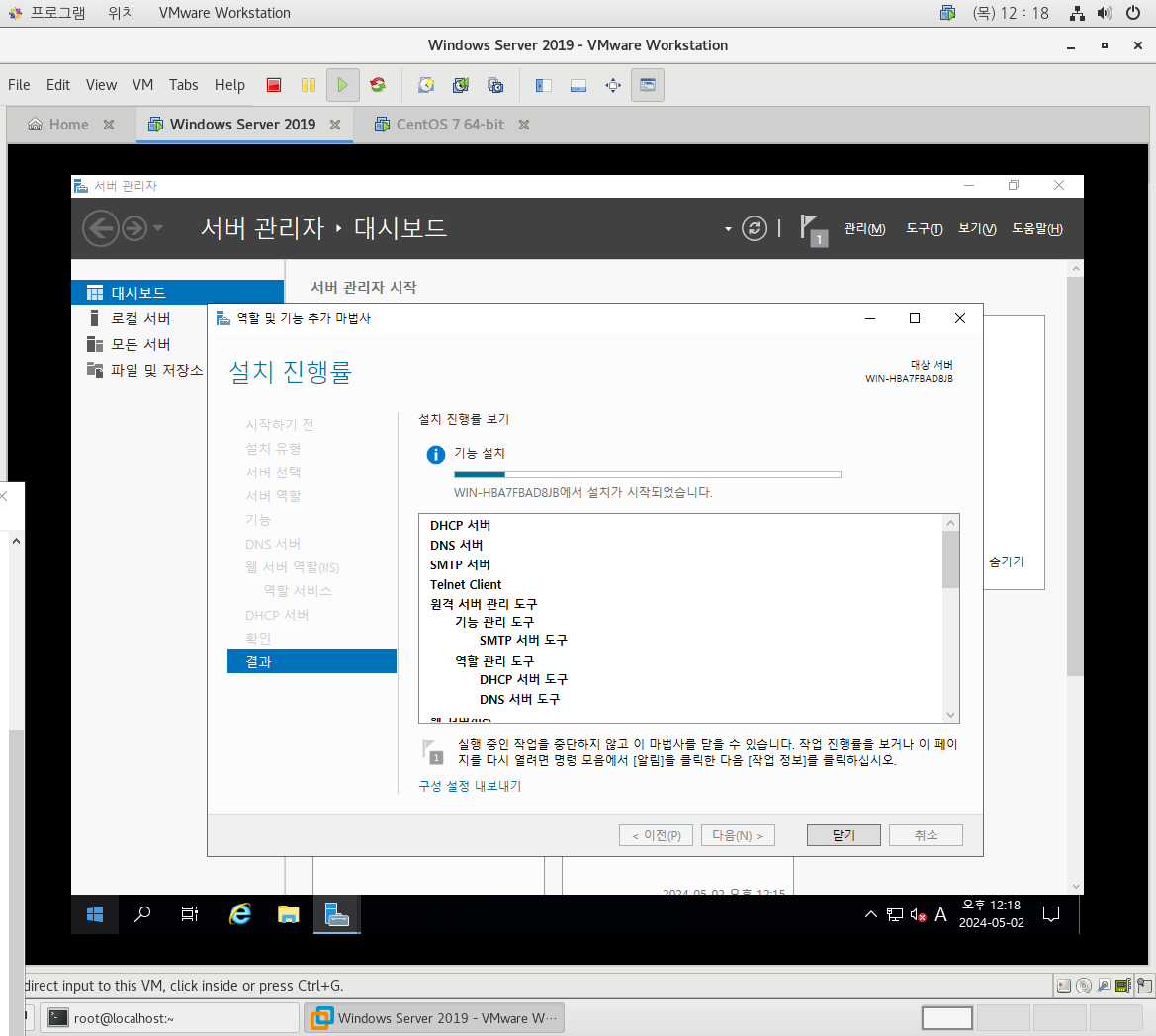 SMTP ,IIS(FTP포함) ,Telnet Client ,DNS ,DHCP 기능을 설치하자