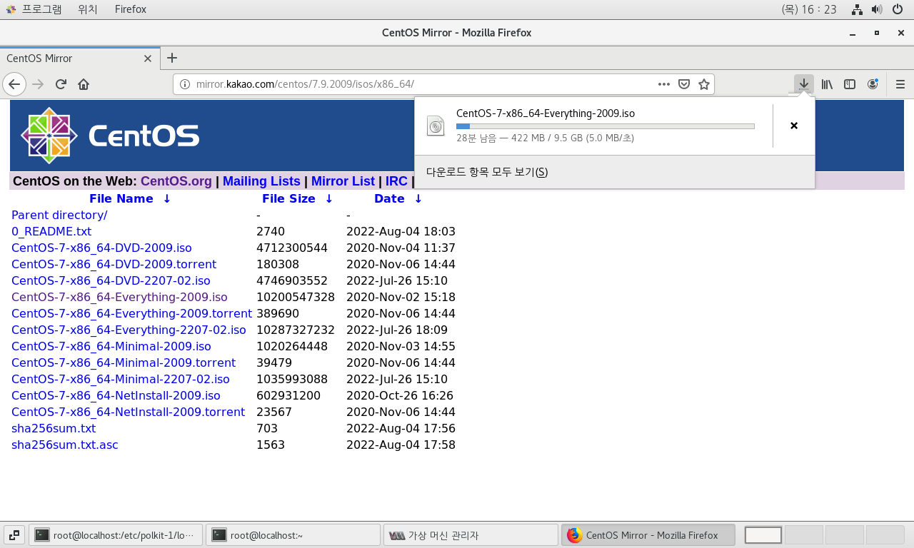 그 후에 CentOS 7-64bit를 Server3에 다운로드하거나