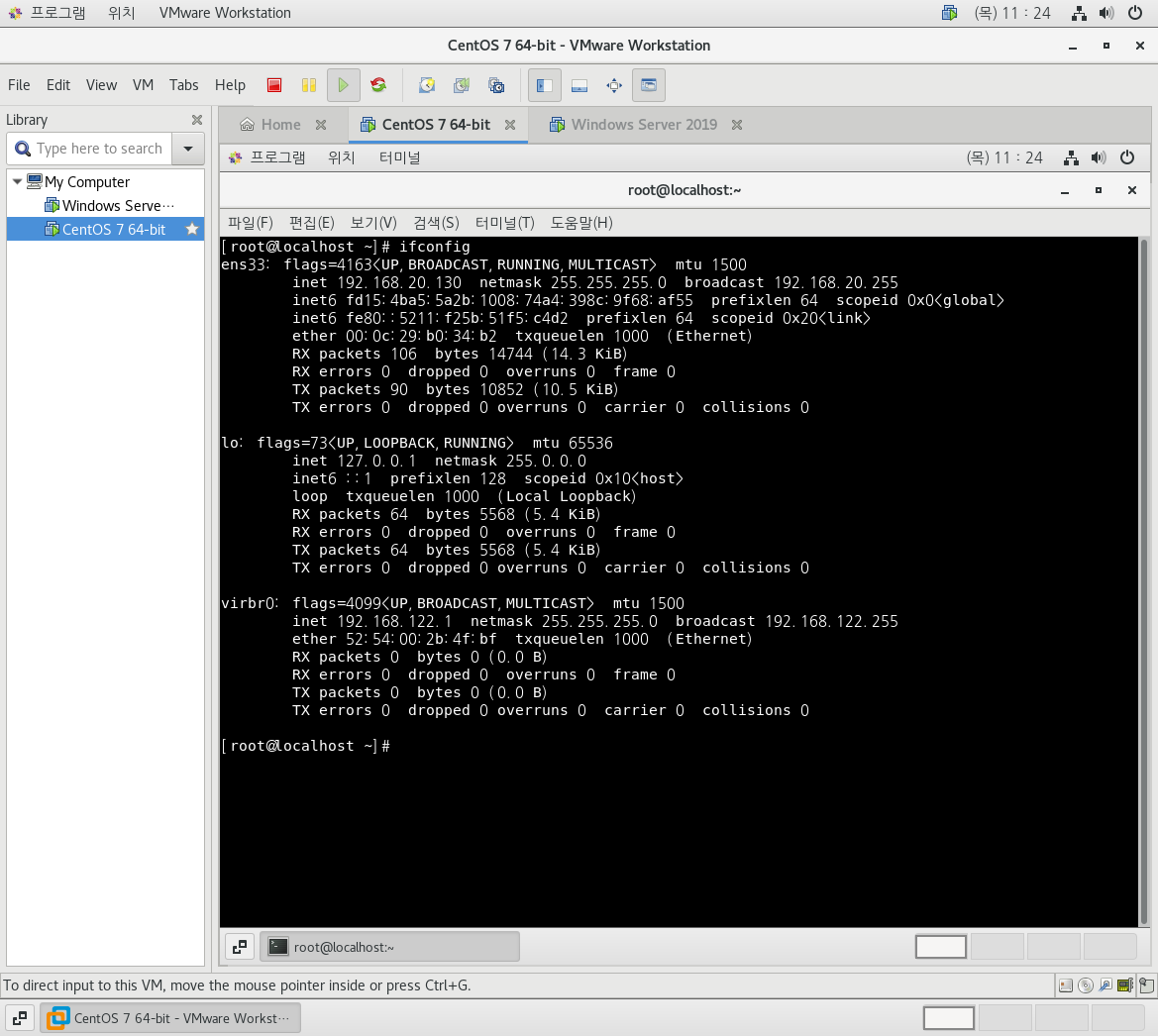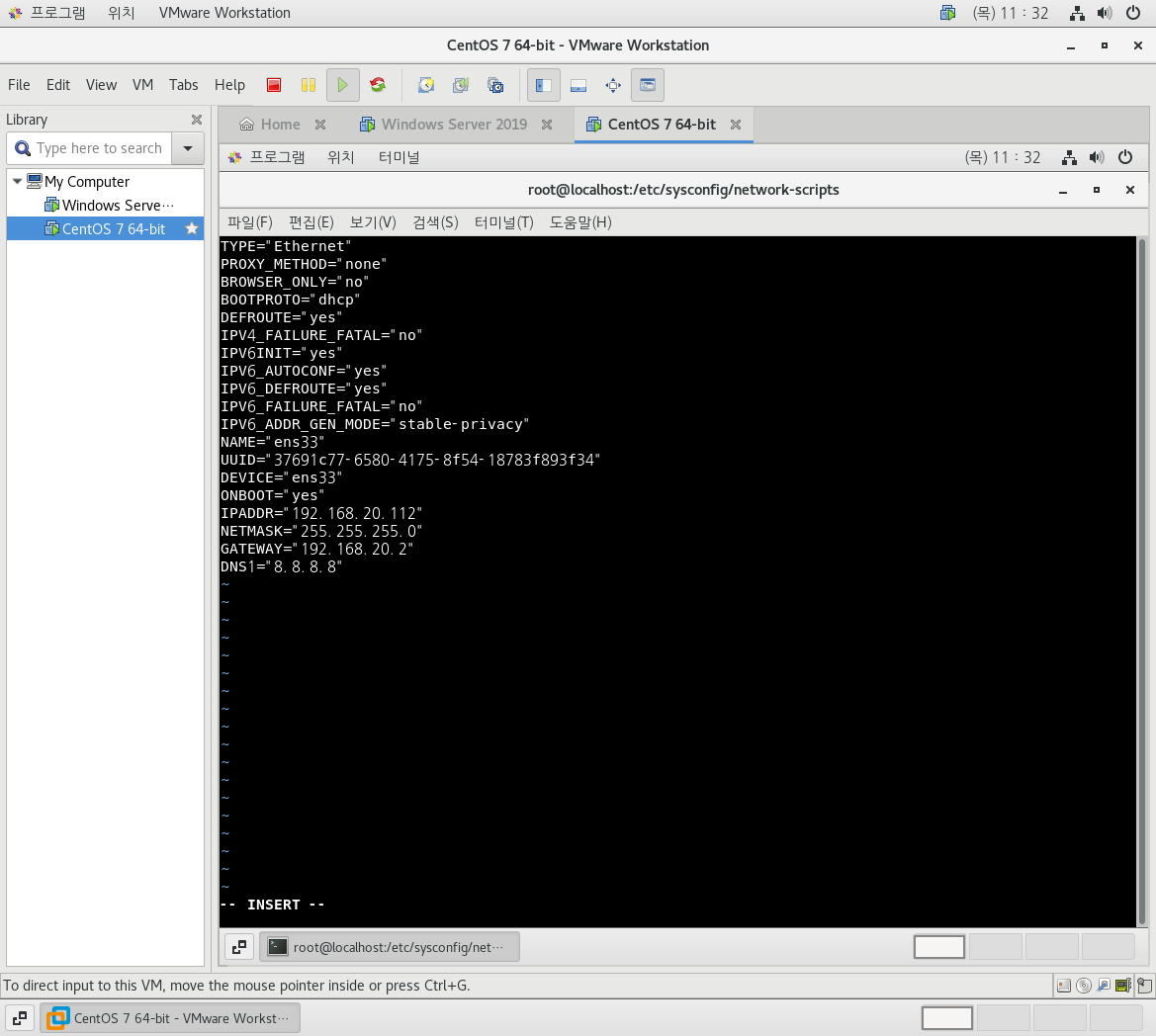 가상 리눅스 = 192.168.20.112