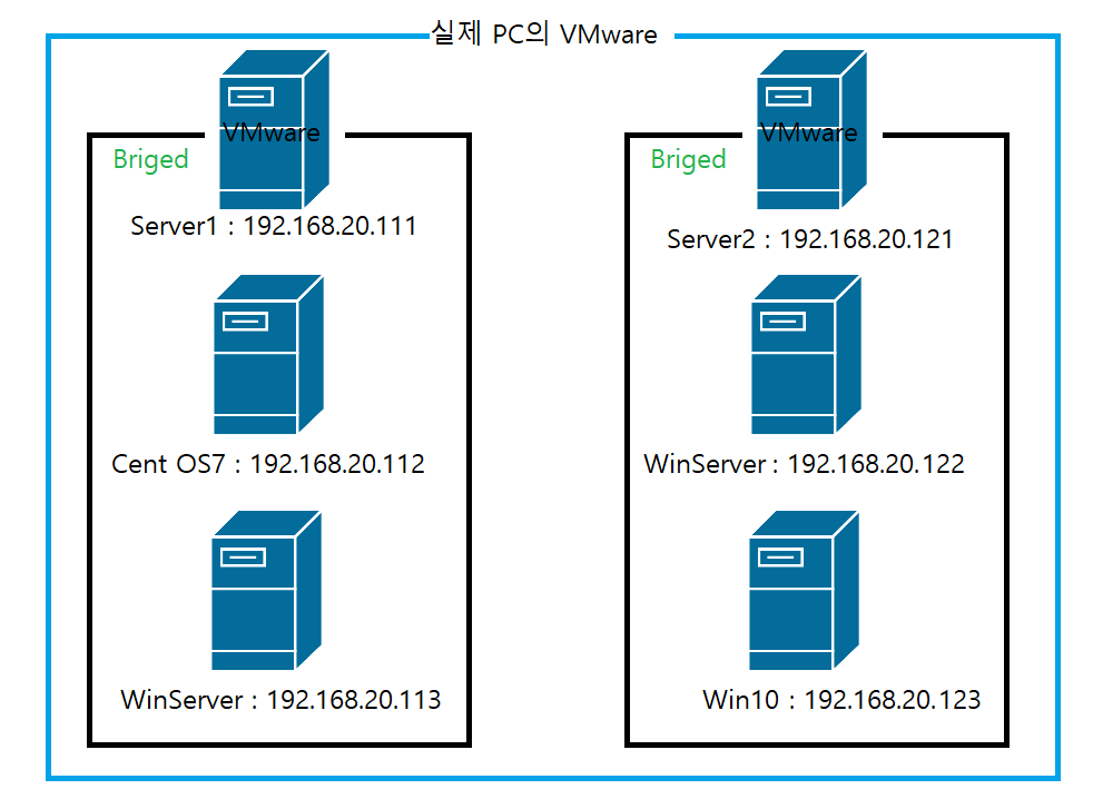 리눅스 서버와, 윈도우 서버 둘을 가상으로