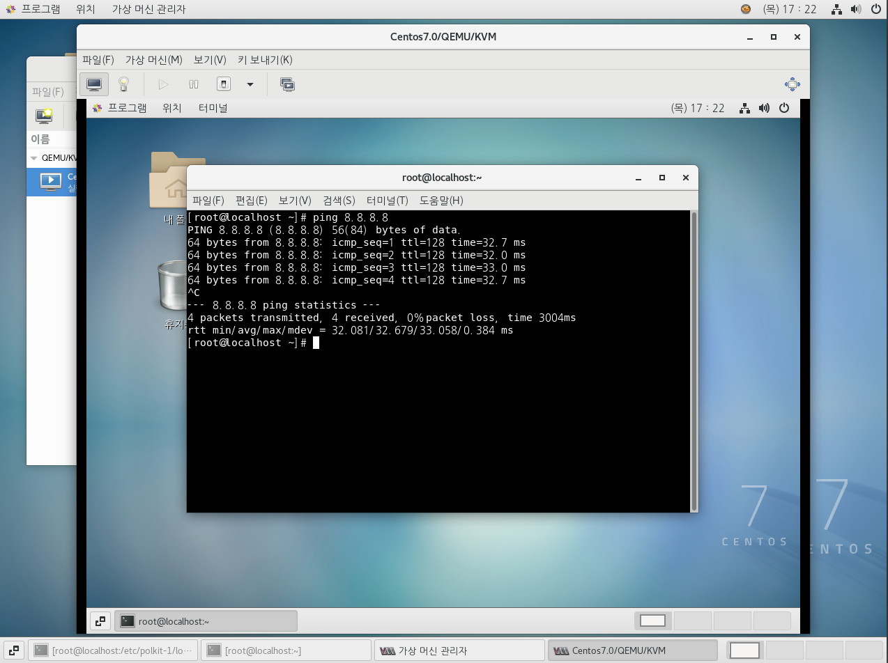 내부 CentOS로 연결 될 것이다.