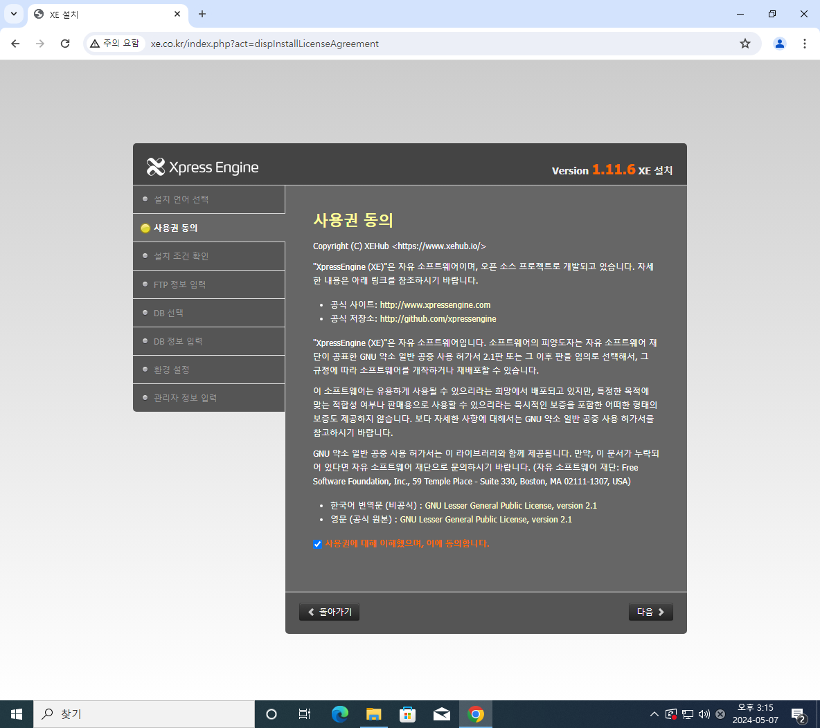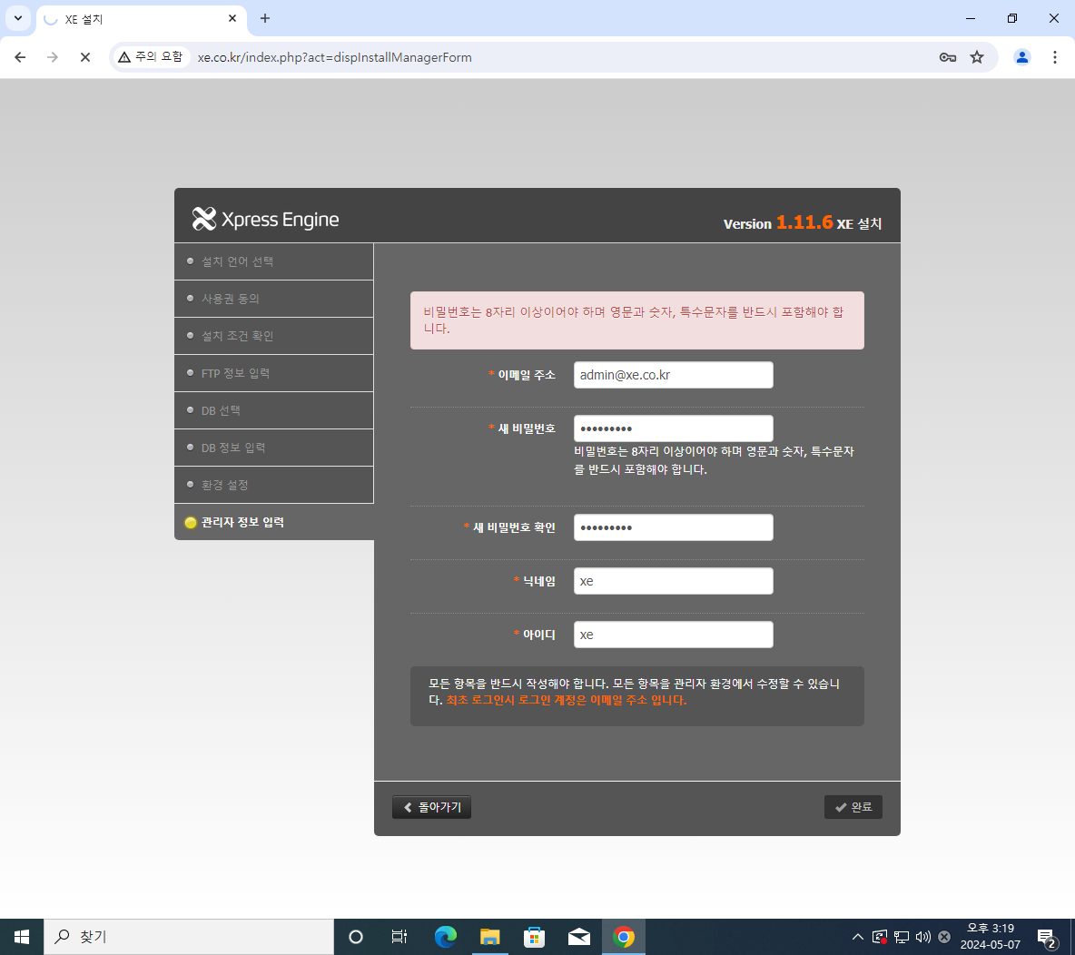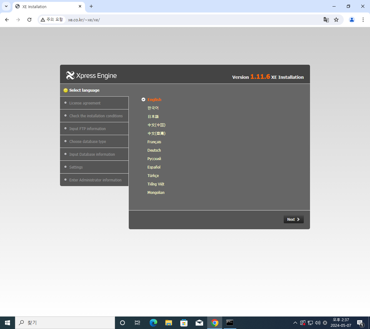 xe.co.kr로 접속한 뒤