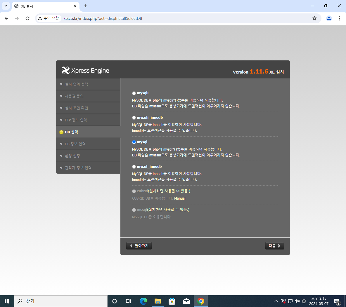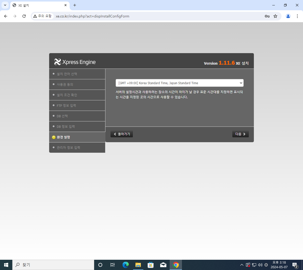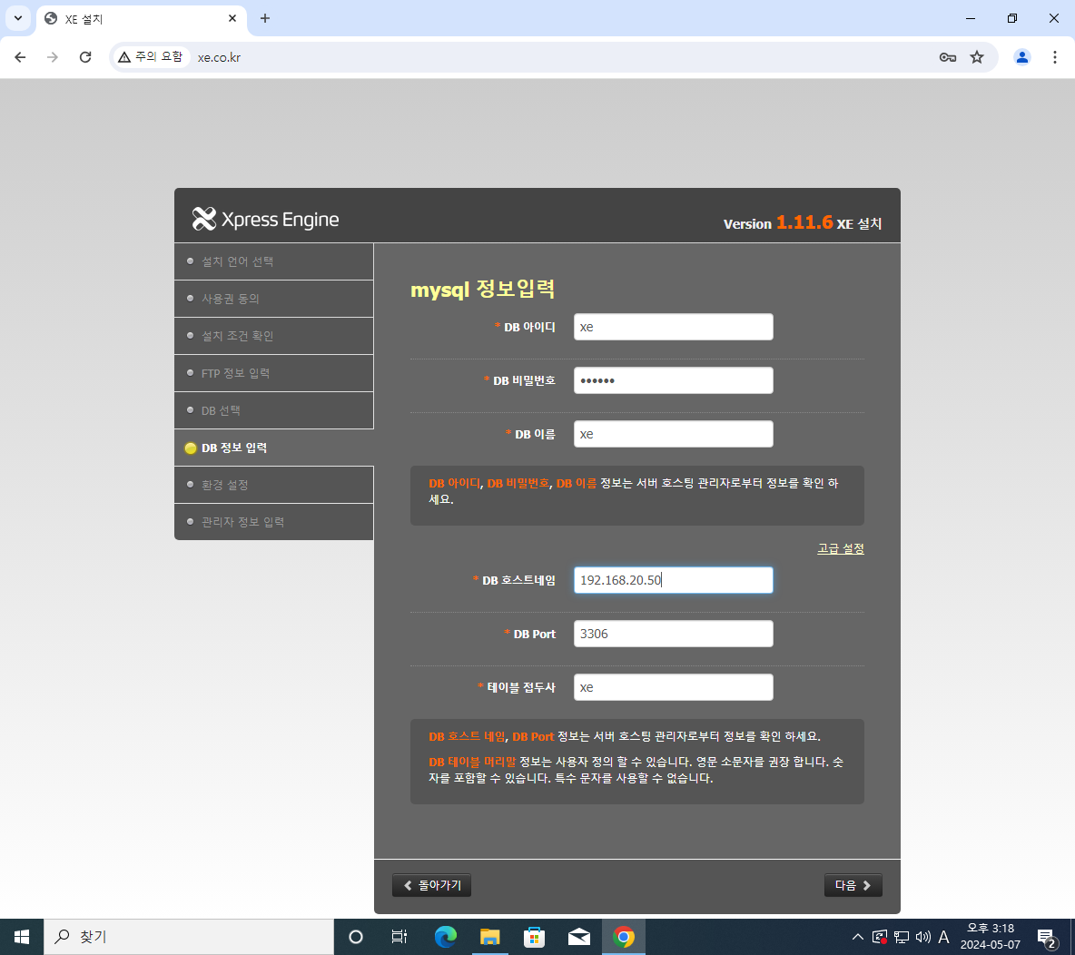 위처럼 xe 설정창이뜨면 성공이다.