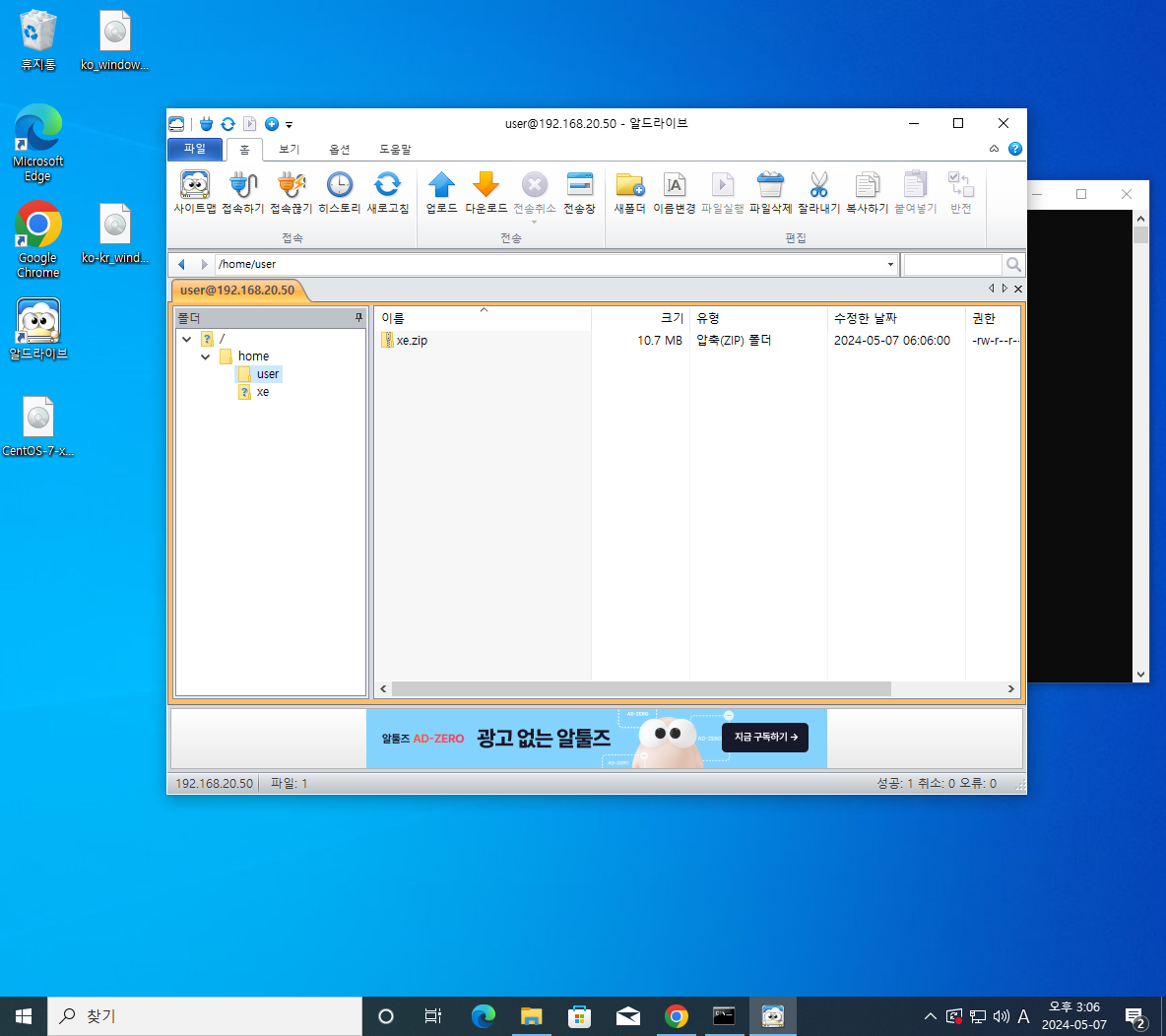 이제 50번 서버에서 xe 파일을 압축해제 하자