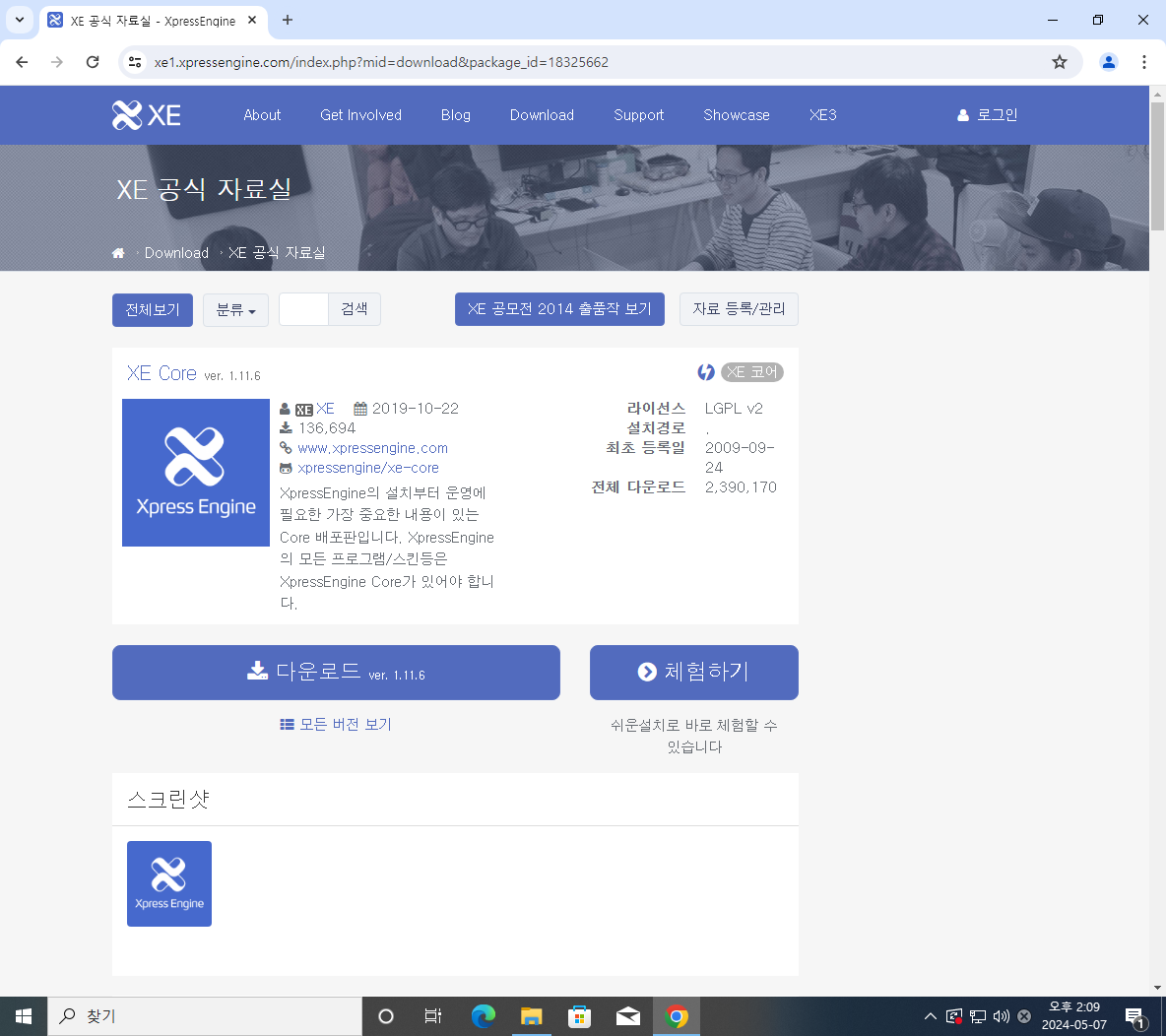 xe.co.kr/~xe/xe 주소로 접속해보면