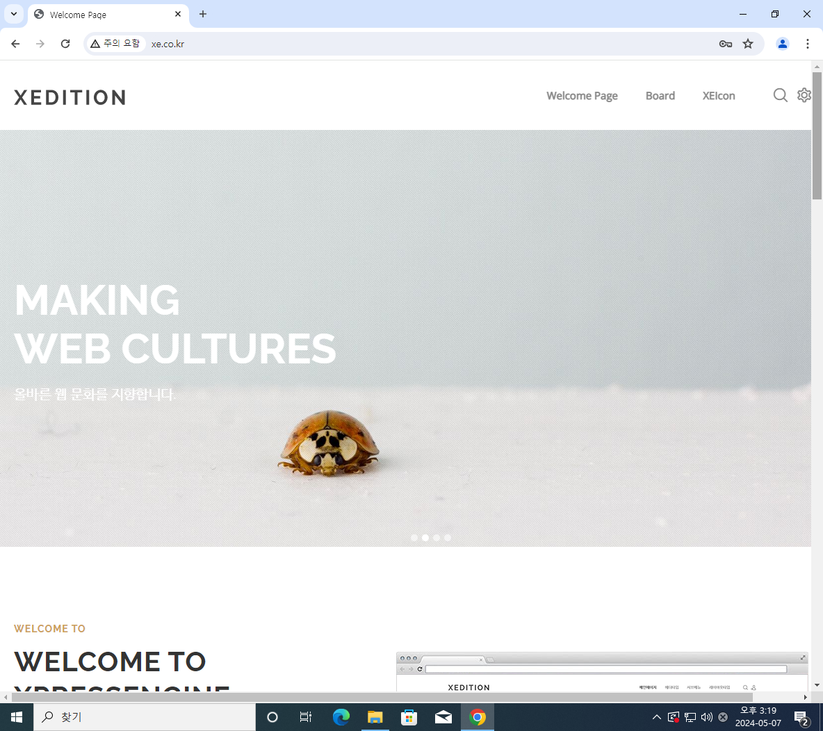 위처럼 XE 기본 창이 뜨면 성공이다!