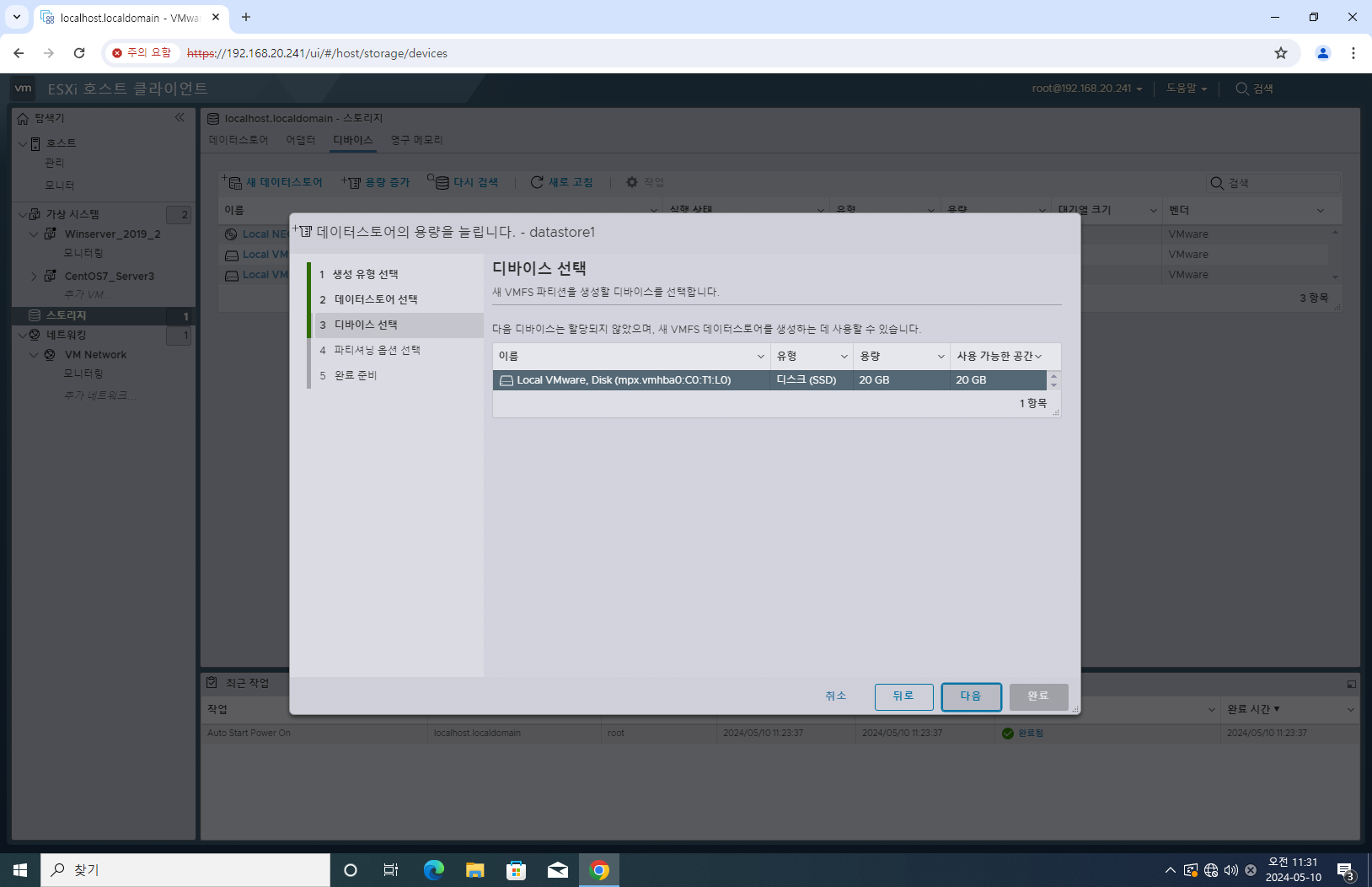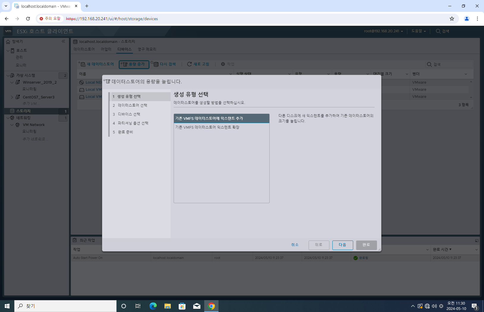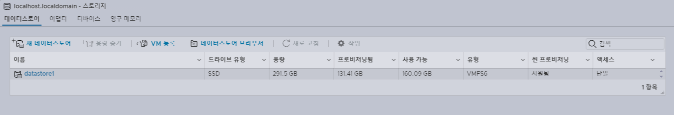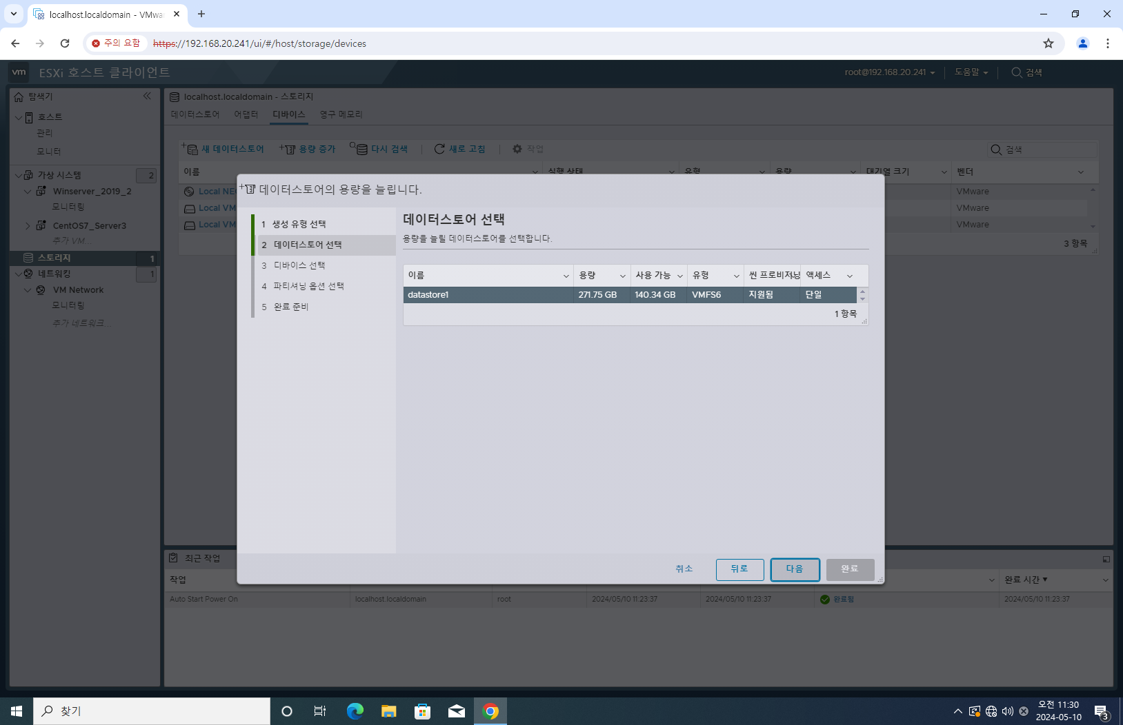 ESXi의 디스크 용량이 부족할때를 가정하고