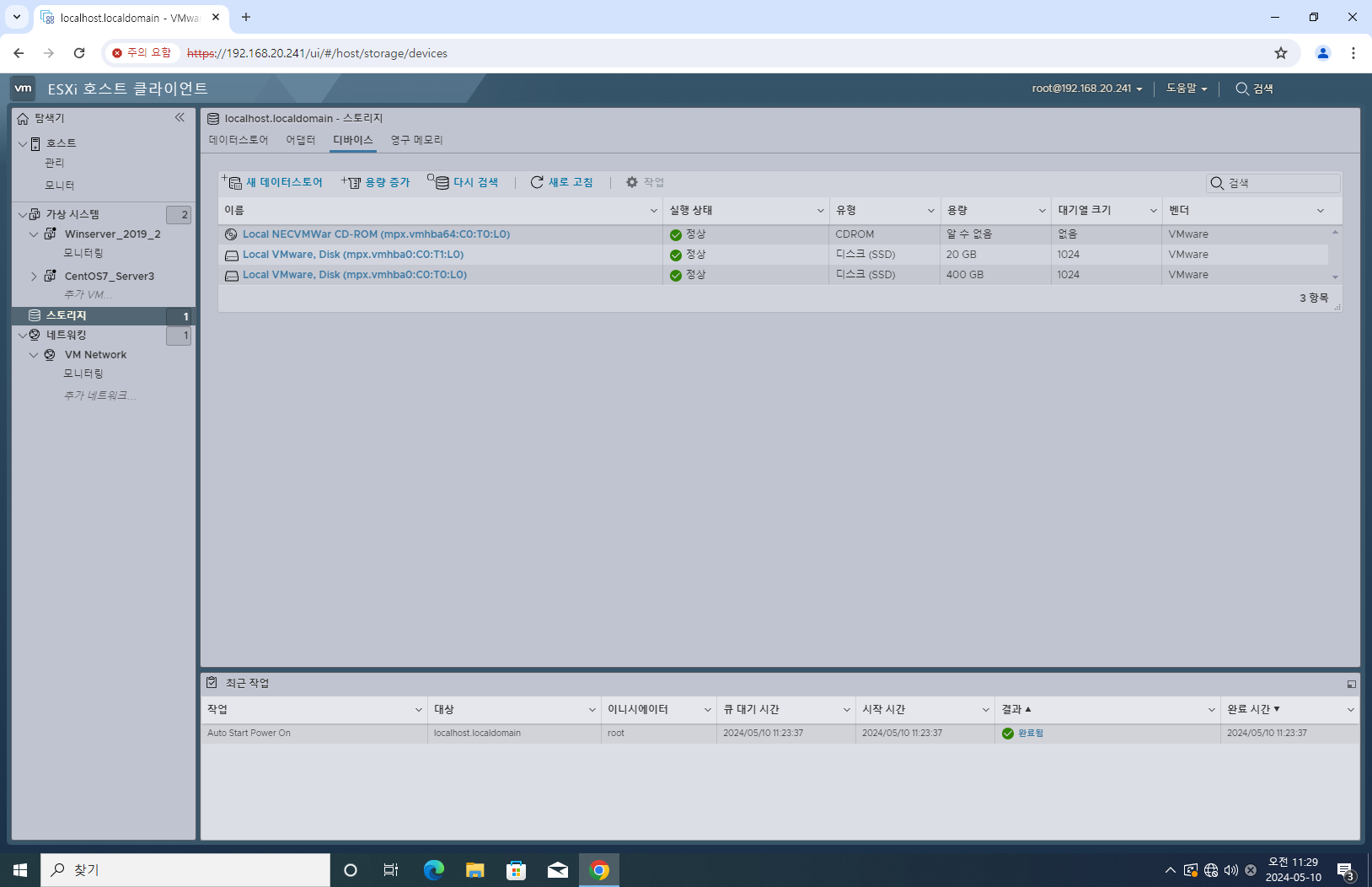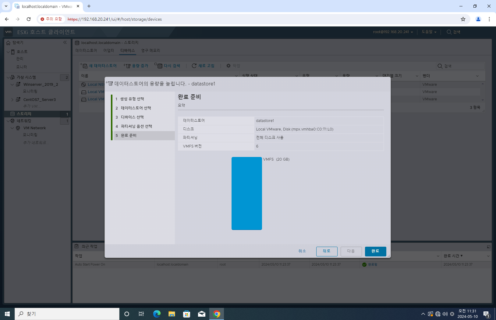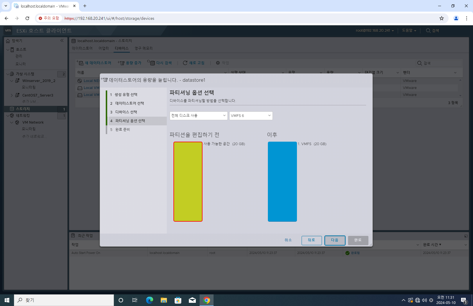 ESXi의 디스크 용량이 부족할때를 가정하고
