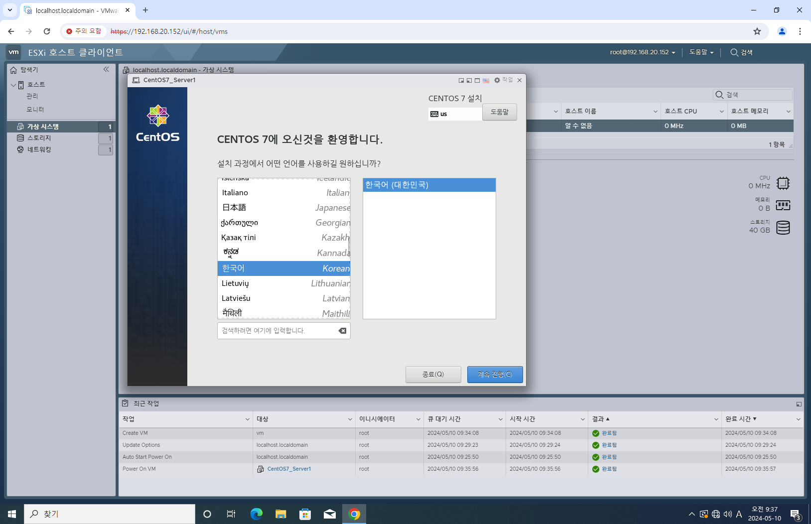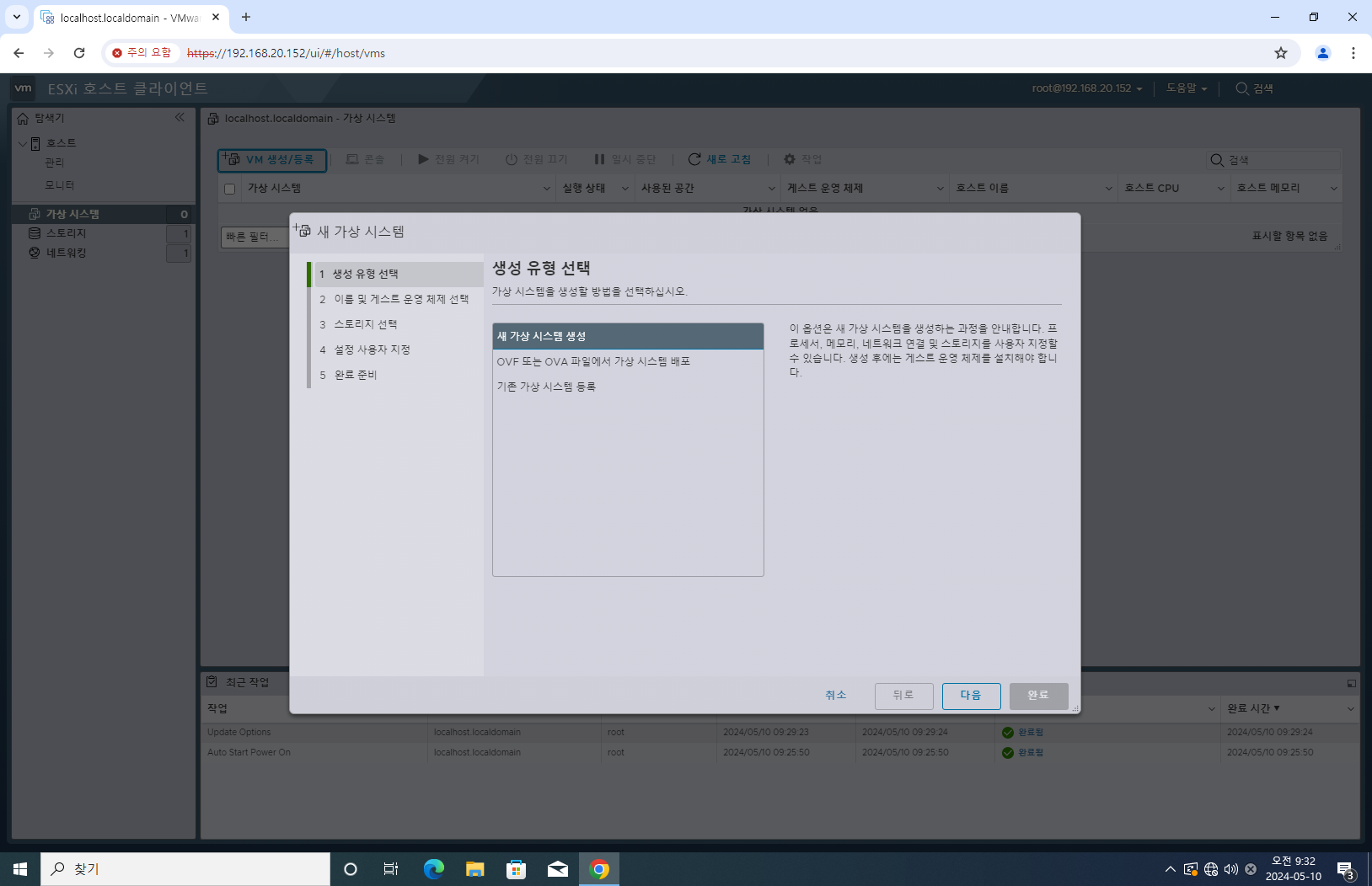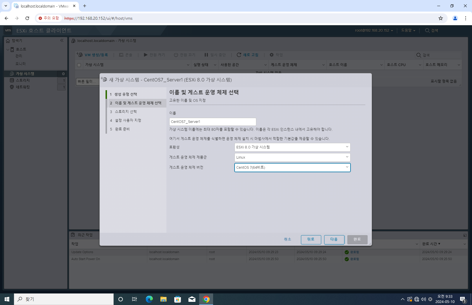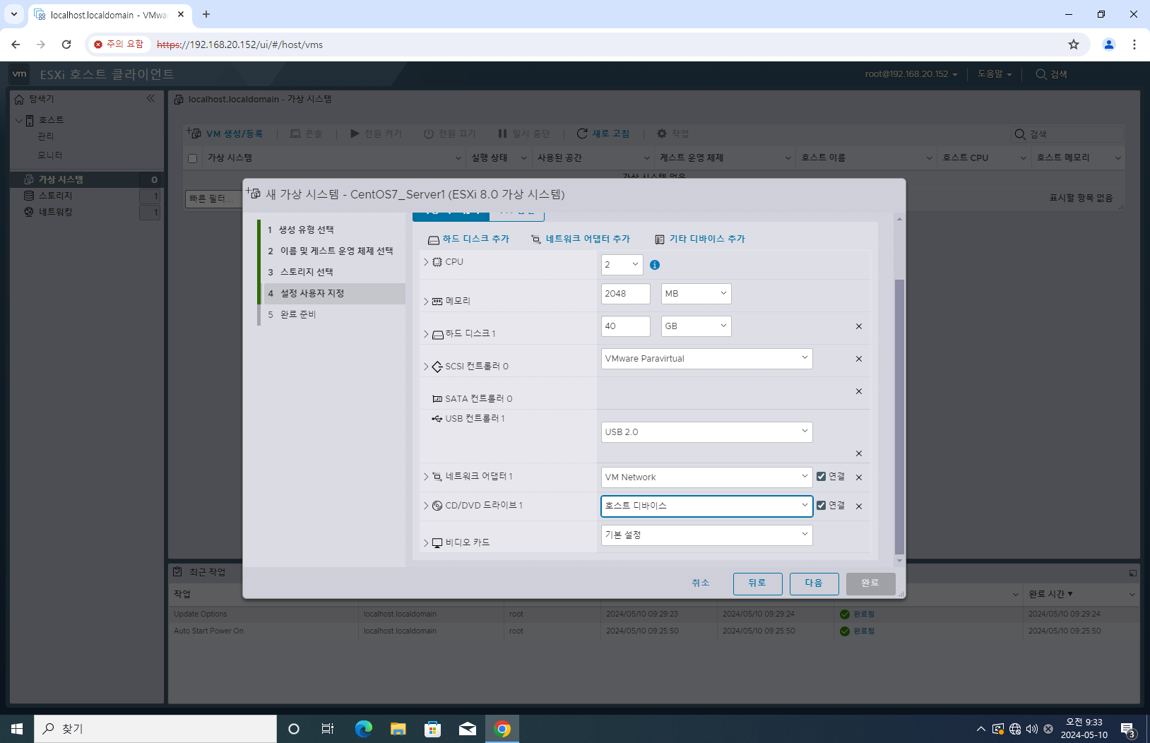 설치를 진행할때 VMware ESXi 의 가상호스트에