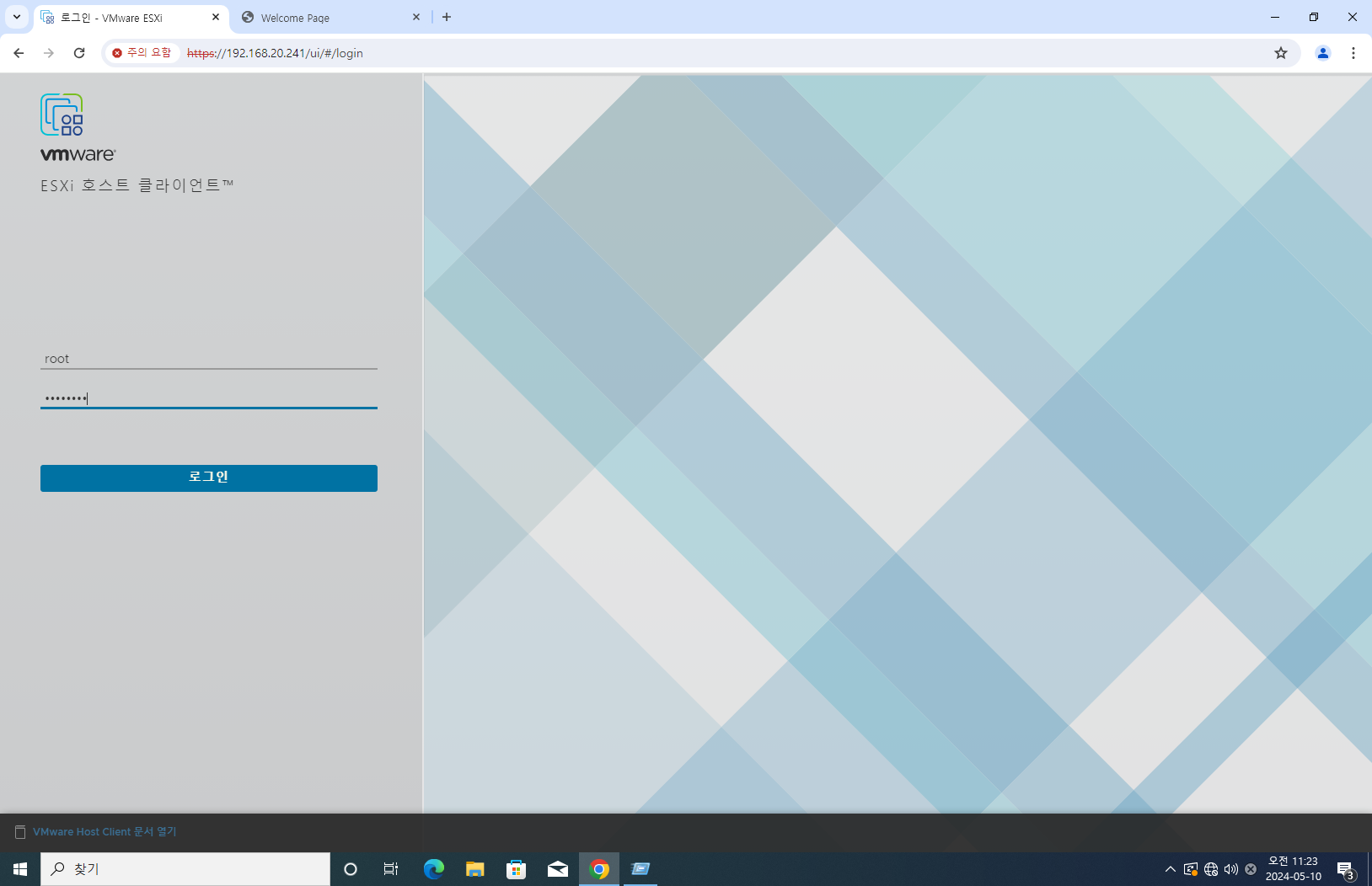 https://(ESXi의 IP) 의 웹페이지로 접속 하자